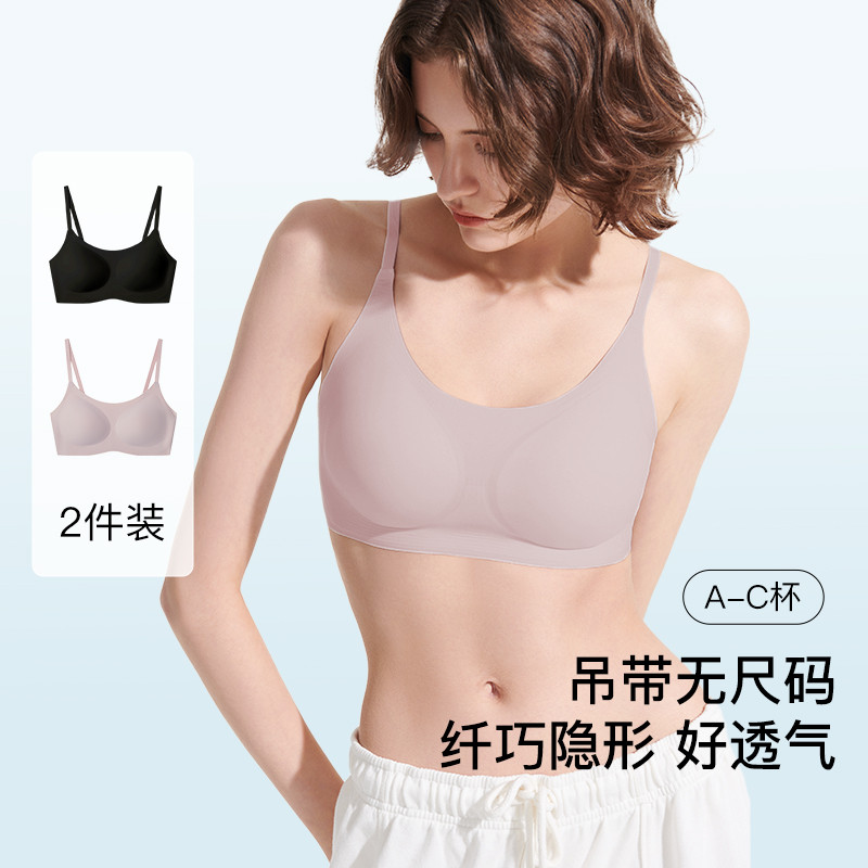 【陈都灵同款】无痕文胸背心一体式吊带抹胸防下垂内衣女夏2件装 386688