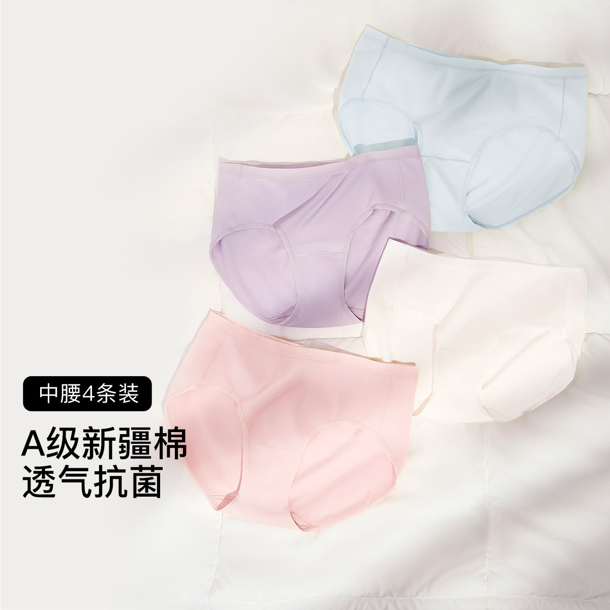 【100%纯棉抑菌底裆】女士内裤夏薄款无痕中腰三角透气4条装 819968