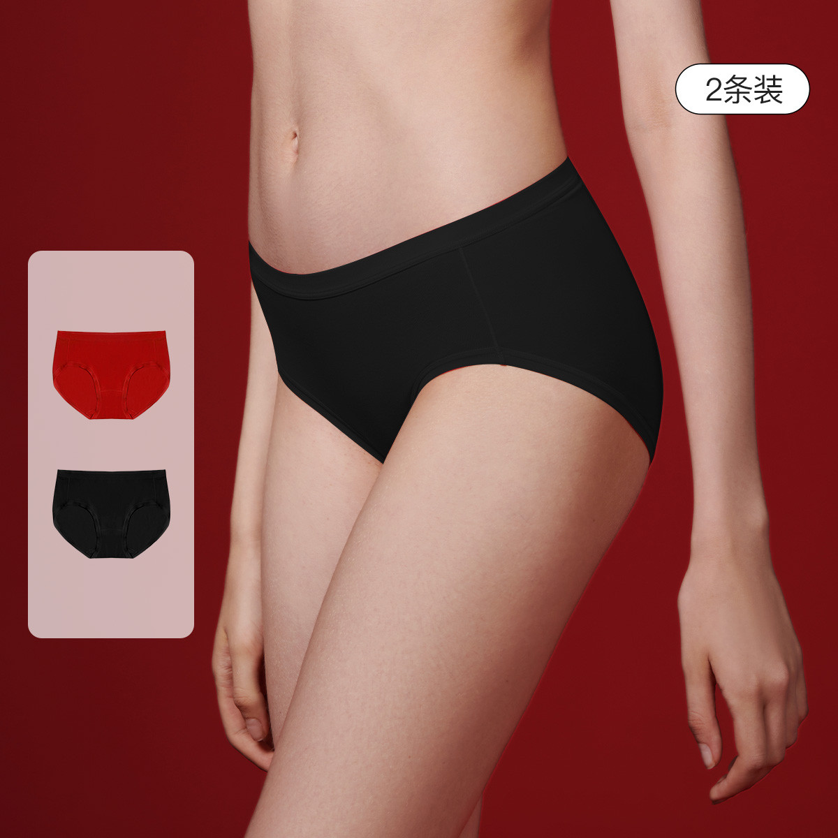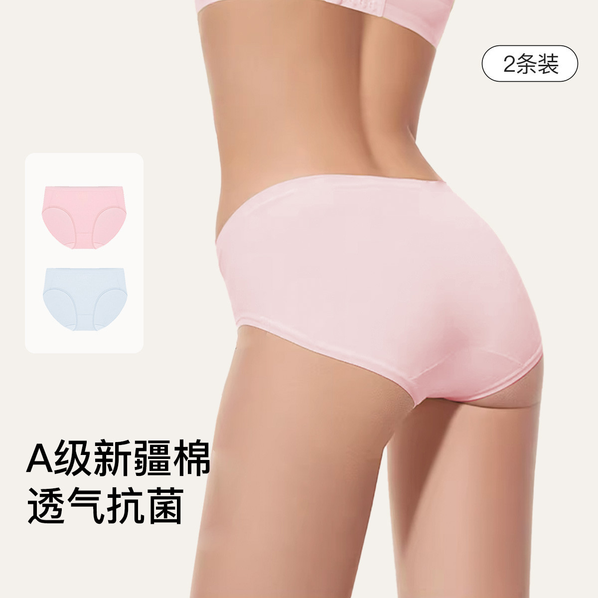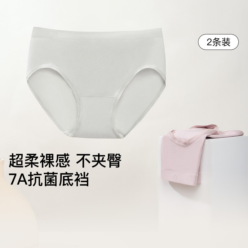 【7A抗菌不夹臀】莫代尔纯棉底档中腰三角裤不卷边内裤女2条装 757824