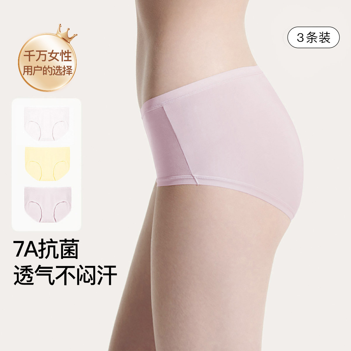 【纯棉抗菌裆】3条装60S莫代尔内裤抗菌裆中腰薄款舒适内裤女 962624