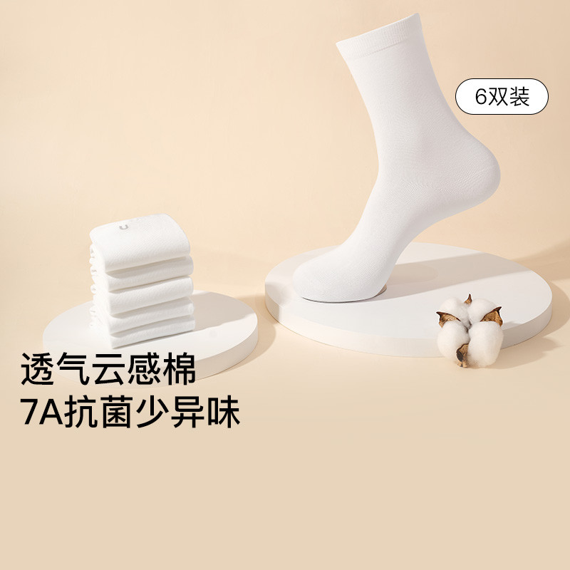 【7A抗菌】透气防臭女士中筒袜通勤百搭袜子女夏季薄款6双装 824064