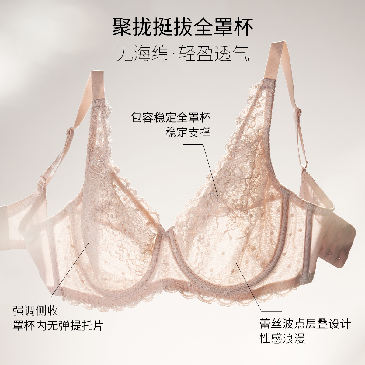 【大胸显小】超薄性感法式蕾丝全罩杯无海绵女士内衣文胸 386821