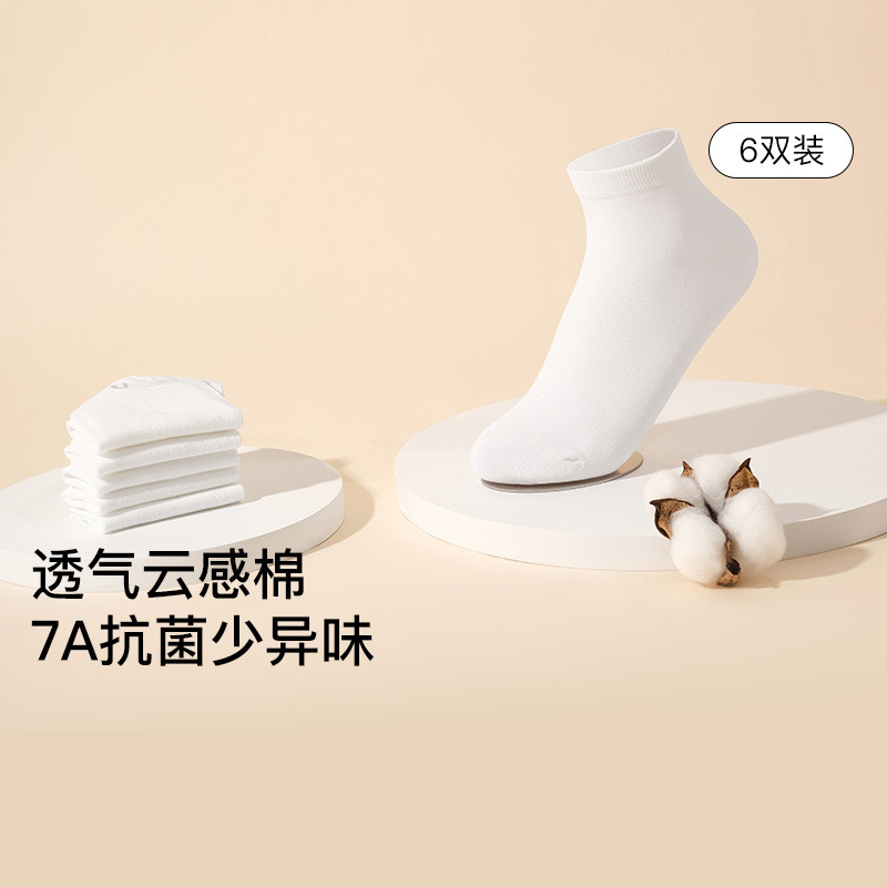 【5A抑菌 6双装 】女士袜子夏季薄款棉软舒适透气运动短袜女 474970