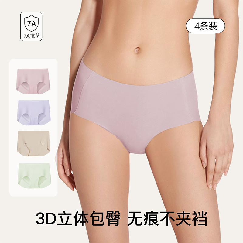 【100%纯棉抑菌底档】无尺码包臀中腰三角裤女士内裤4条装 352448