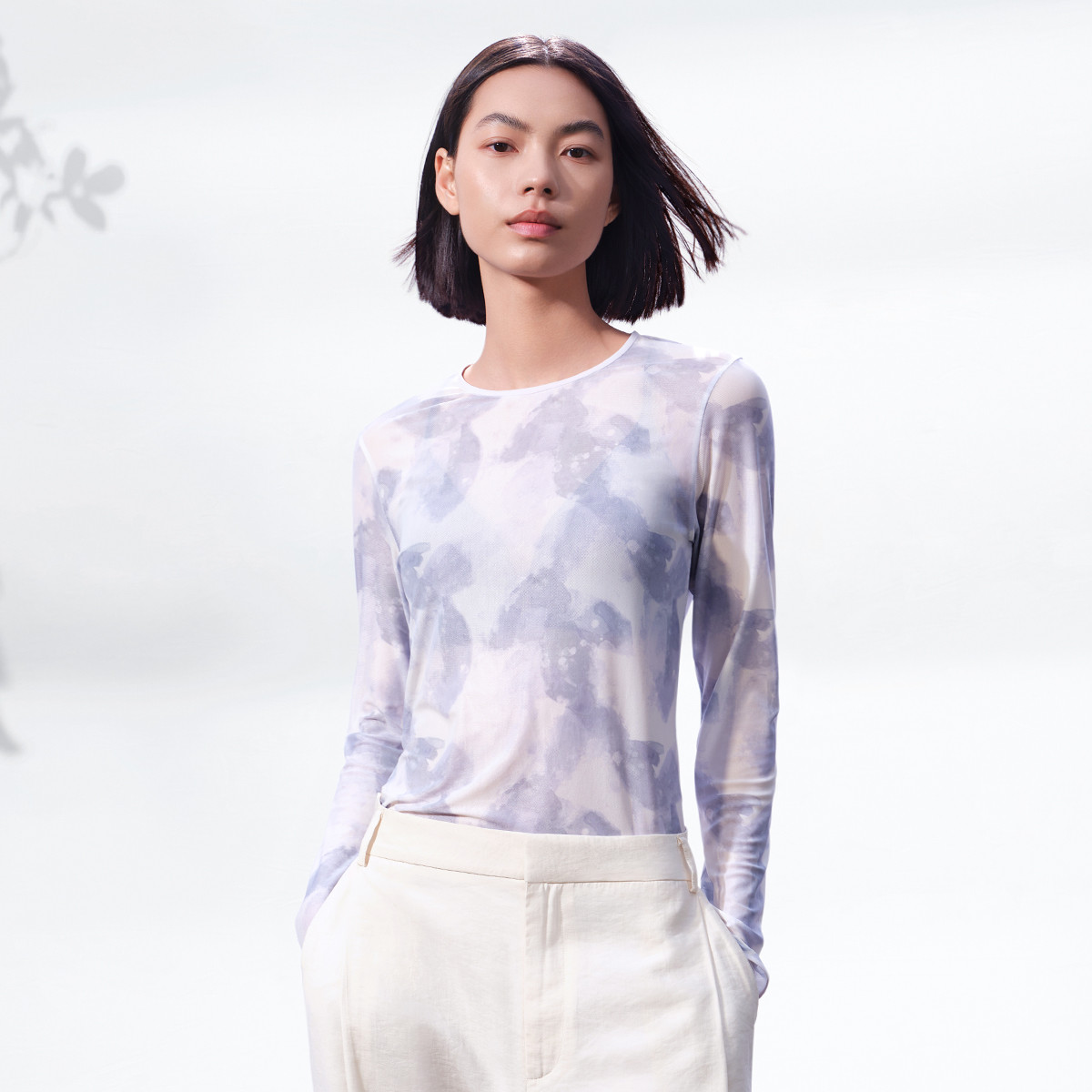 【内搭高级感】圆领网纱印花长袖打底衣女士打底衫薄款上衣 288128