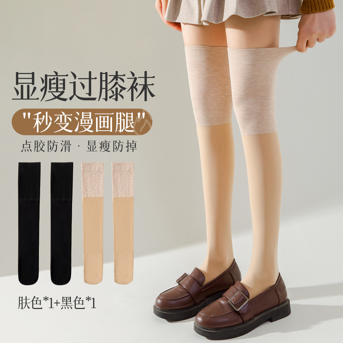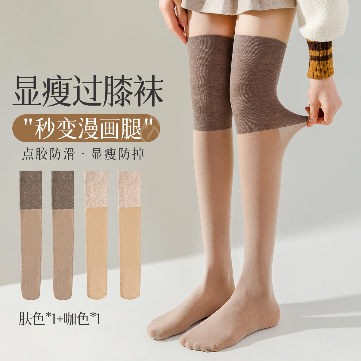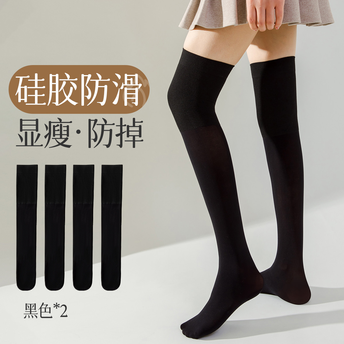 【2条装丝袜】夏季薄款性感过膝长筒袜舒适美腿显瘦女士防滑高弹 880651