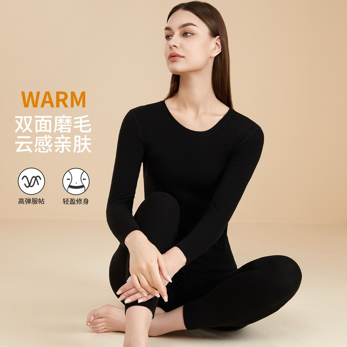 圆领套头柔软舒适秋衣秋裤套装女亲肤打底保暖内衣女秋冬长袖 741195