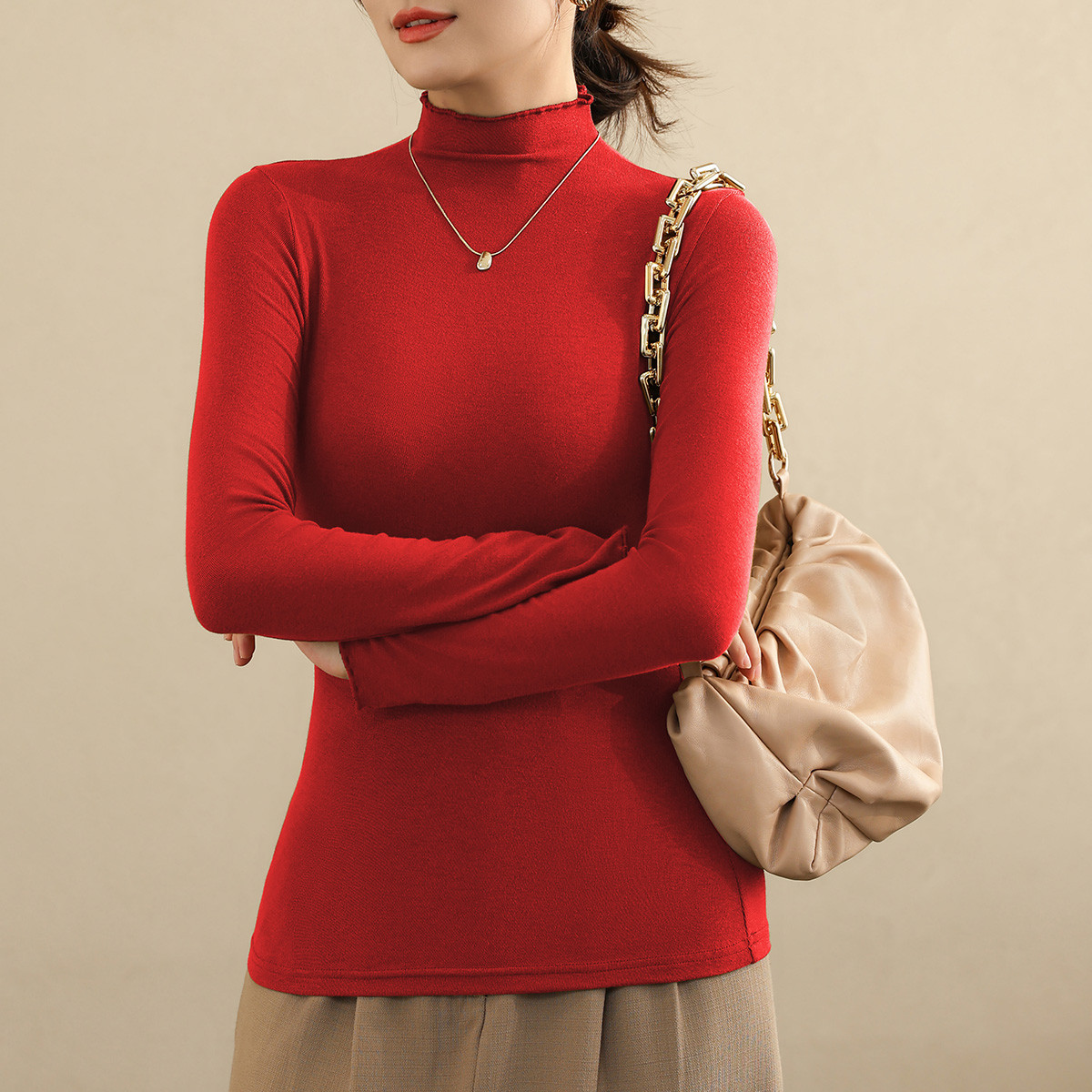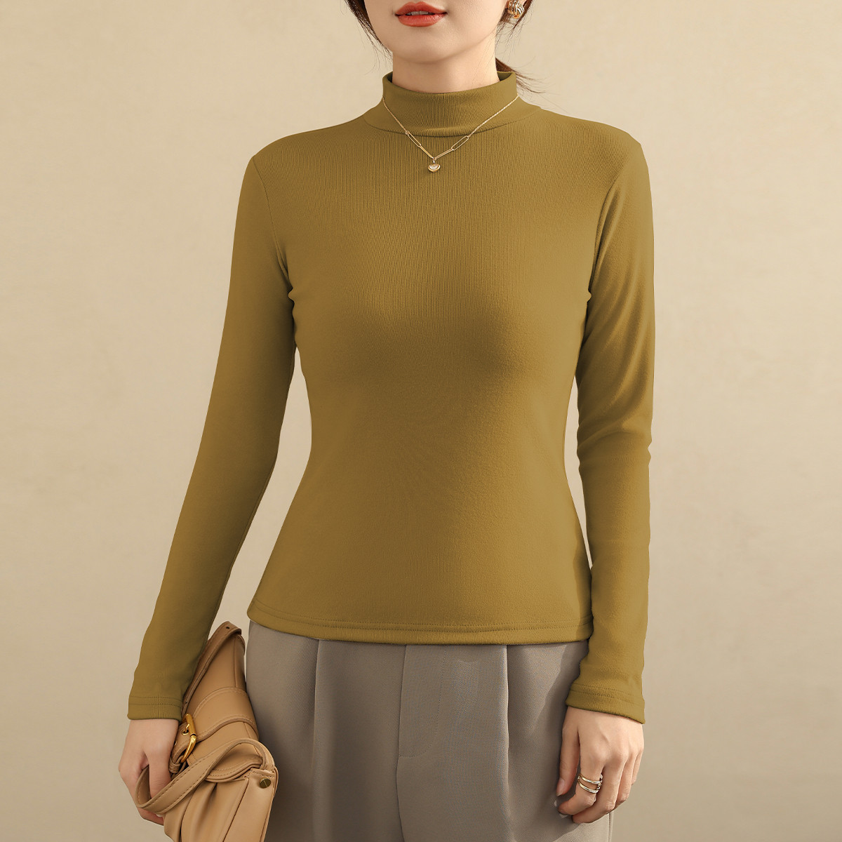 【半高领】冬款保暖内搭打底衫女士纯色紧身女上衣保暖内衣可外穿 354827
