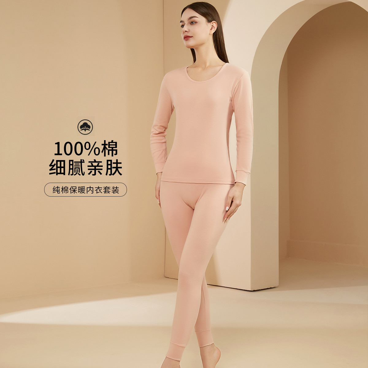 【100%棉】舒适柔软长袖保暖内衣女套装纯棉秋衣秋裤套装女 713227