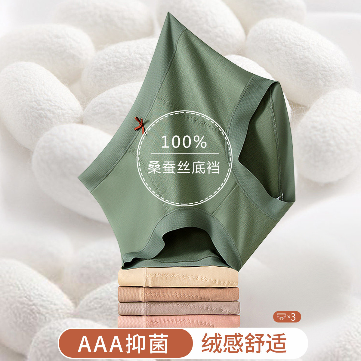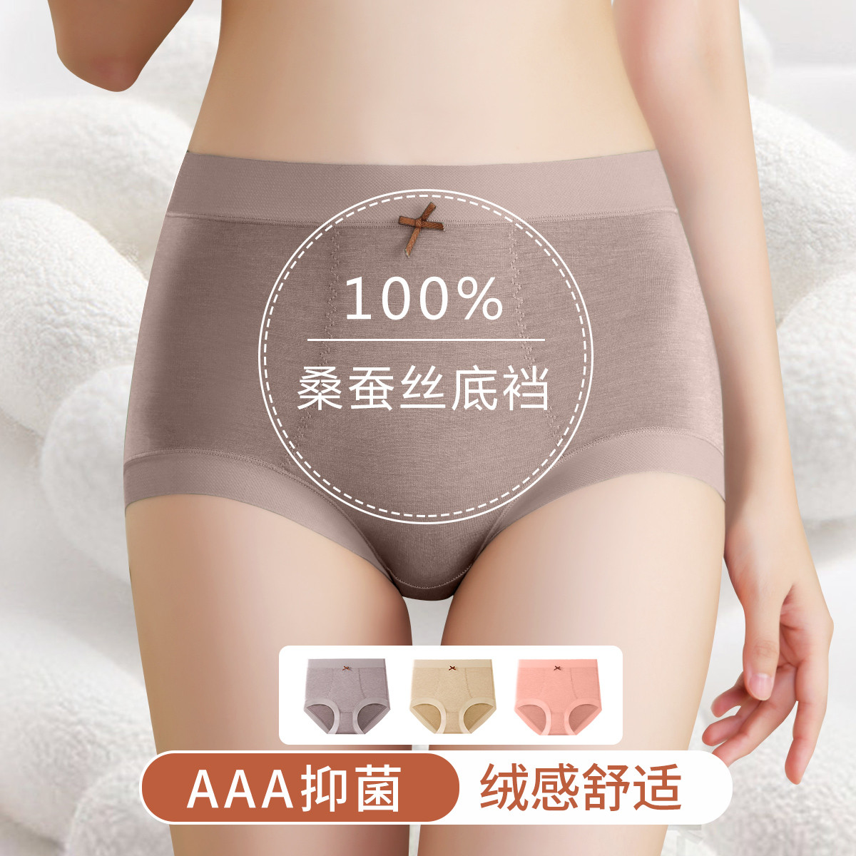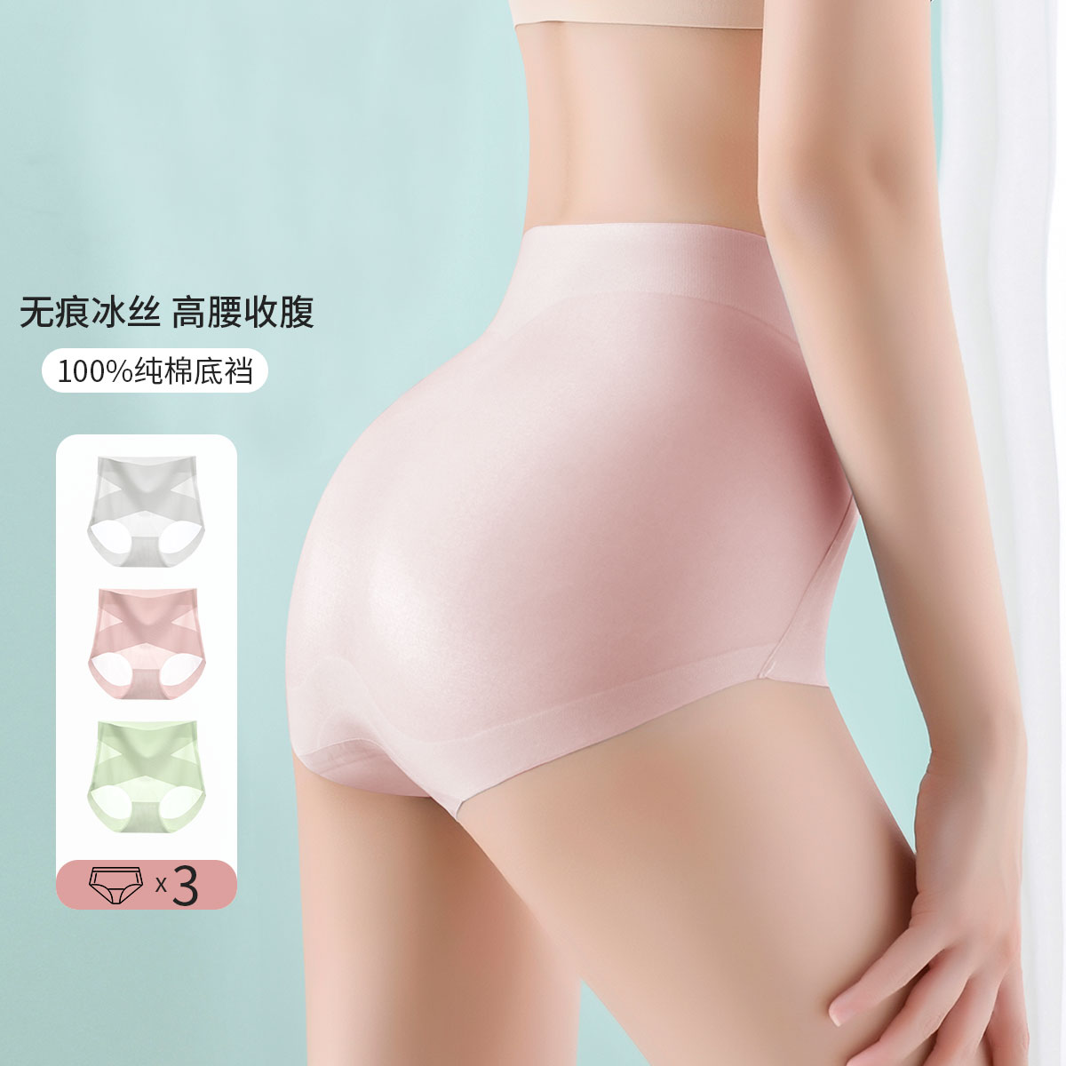 【100%桑蚕丝裆】3条装高腰收腹提臀弹力透气女士内裤女夏季 503774