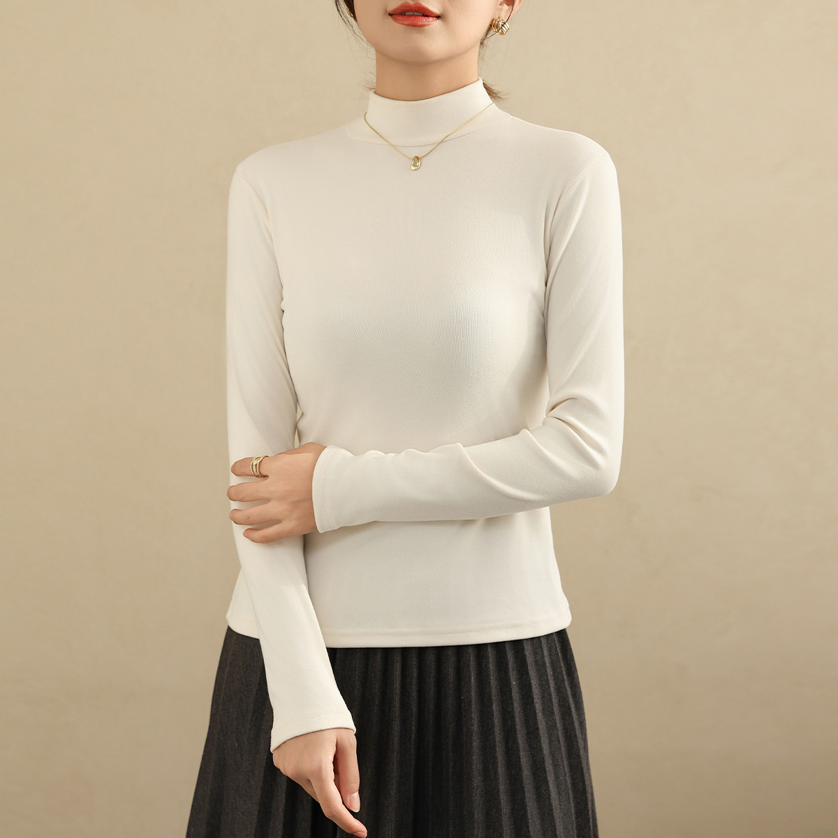 【半高领】加厚保暖内衣柔软舒适外穿纽扣打底衫大衣内搭冬 301131