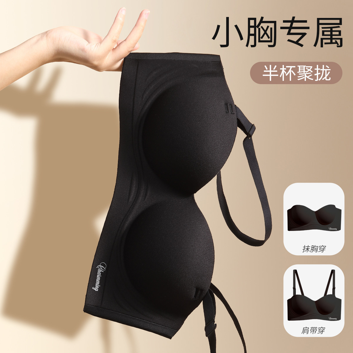 【饱满半杯】半杯无肩带文胸女大码光面可拆卸肩带抹胸夏季内衣 500750
