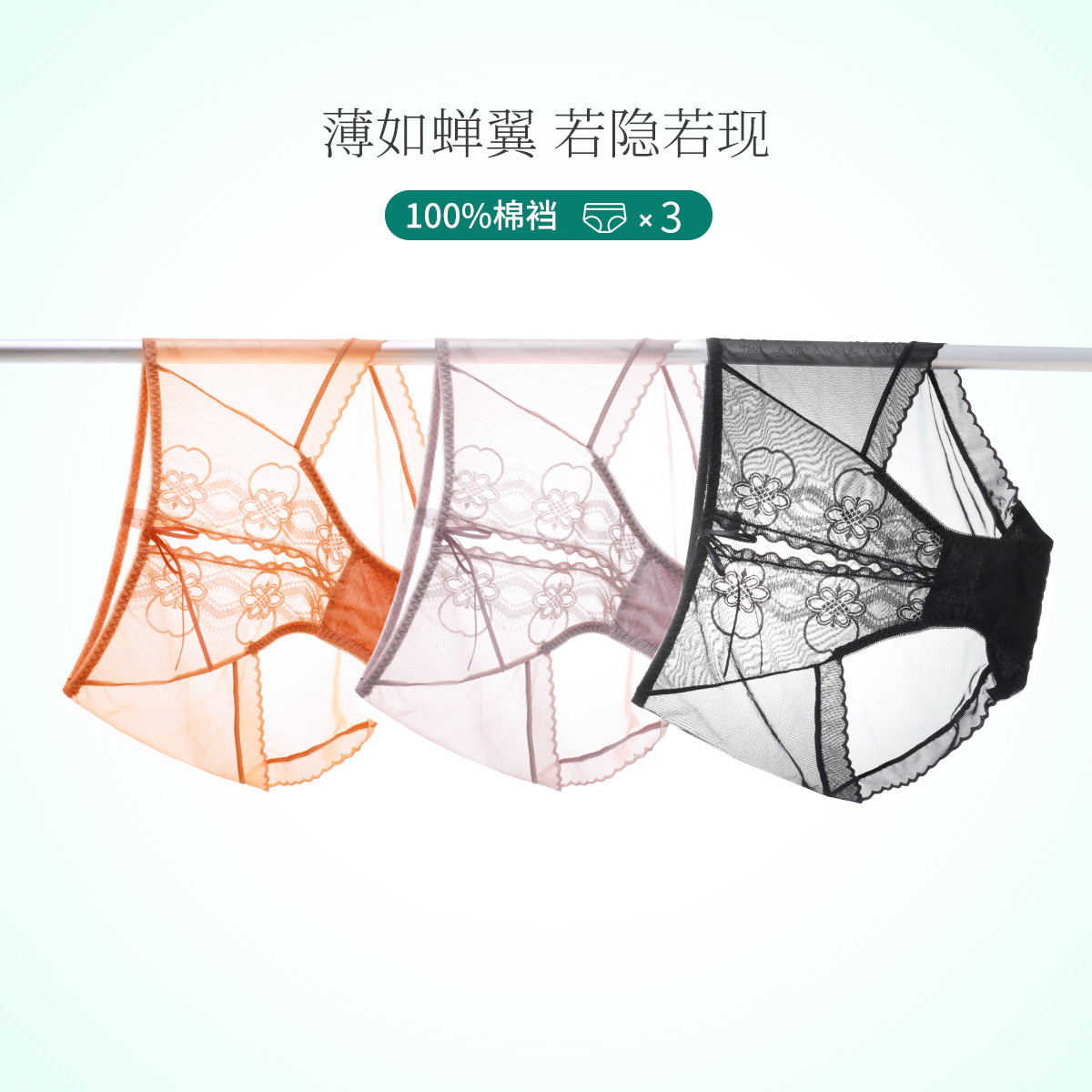 【夏季薄款 纯棉档】3条装透视蕾丝性感网纱氧气女士内裤内裤女 733982