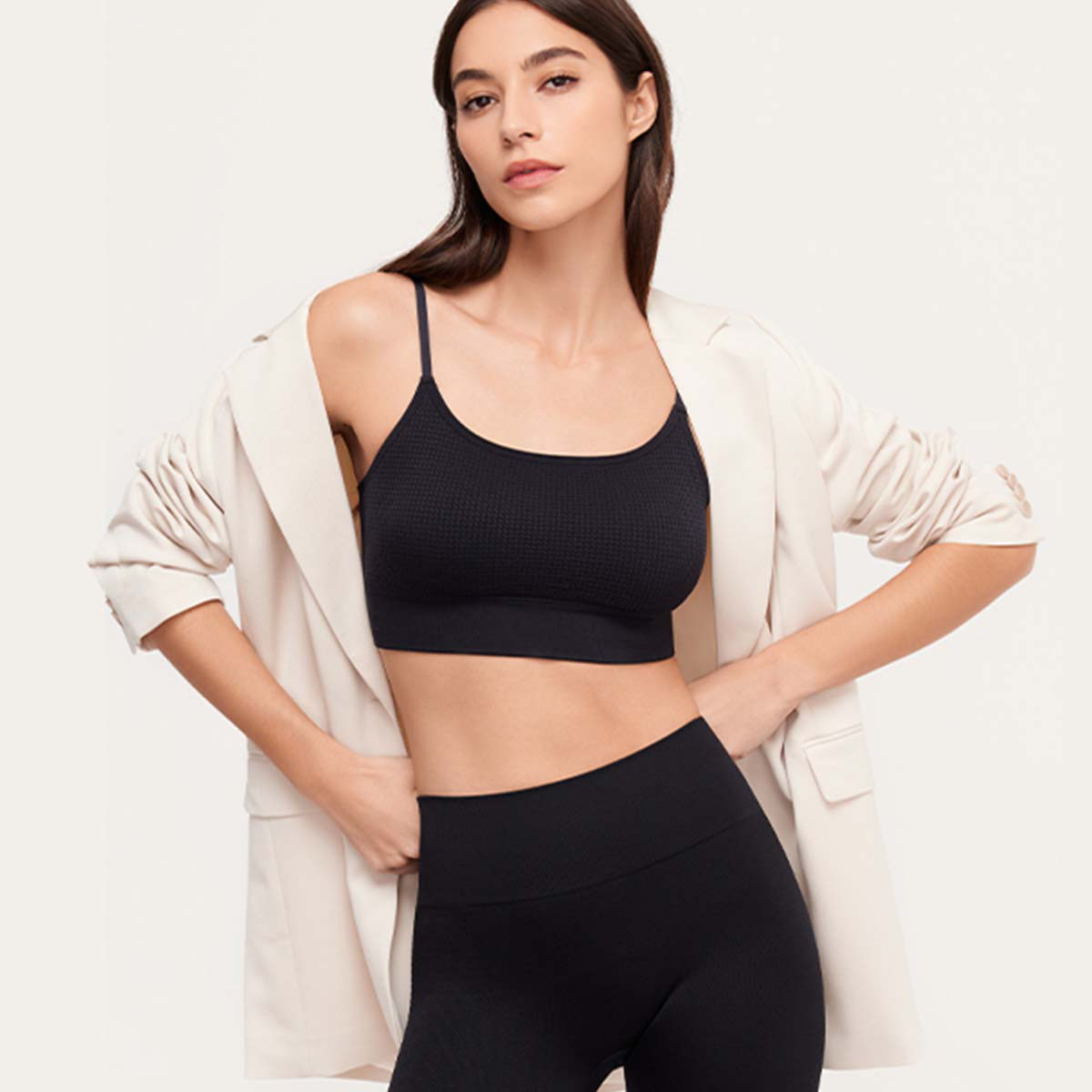 【刘雯同款】菱格提花bra-in无缝短背心吊带衫女 873024