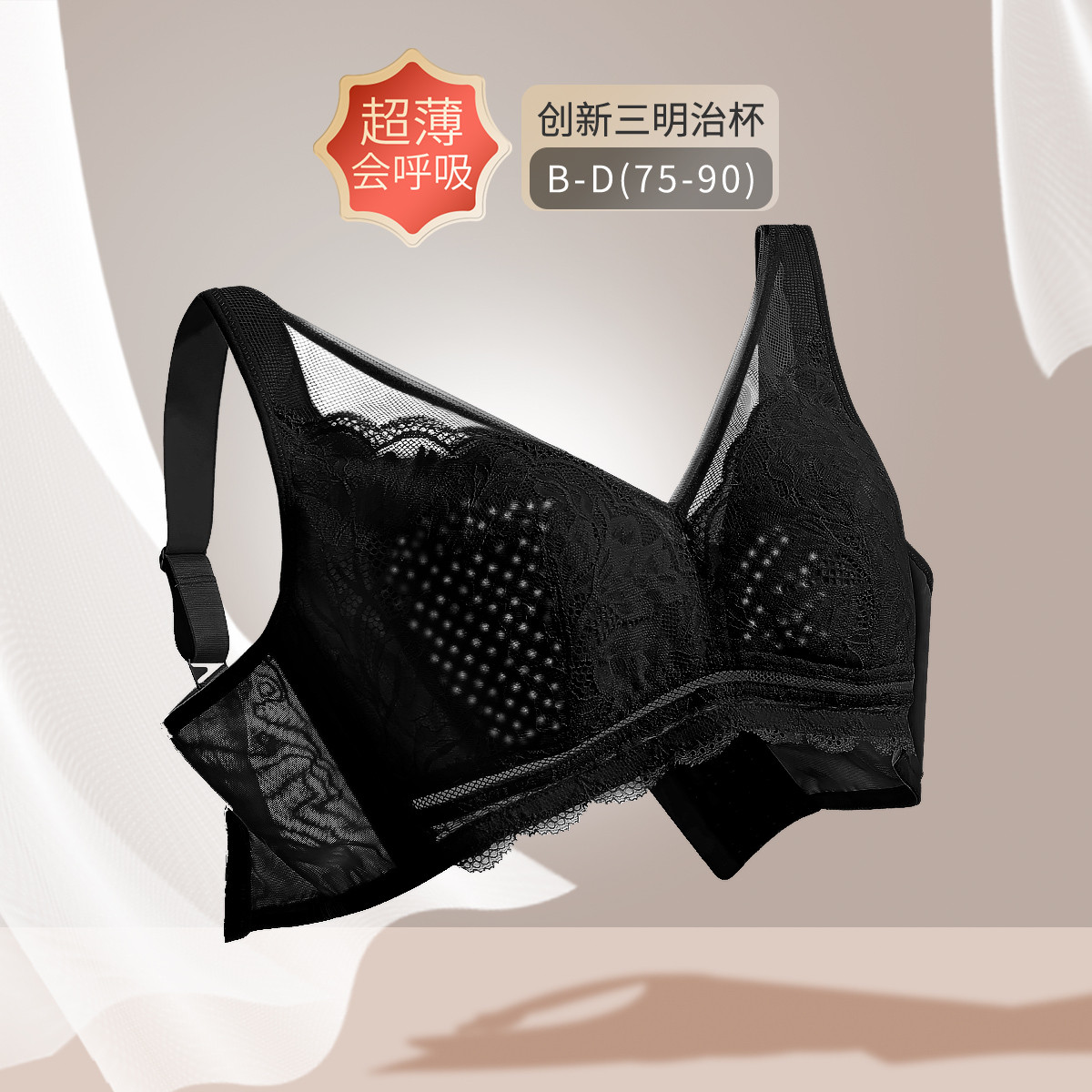 【三明治黑科技】薄透气无钢圈大胸显小防下垂美背内衣女文胸罩夏 366686