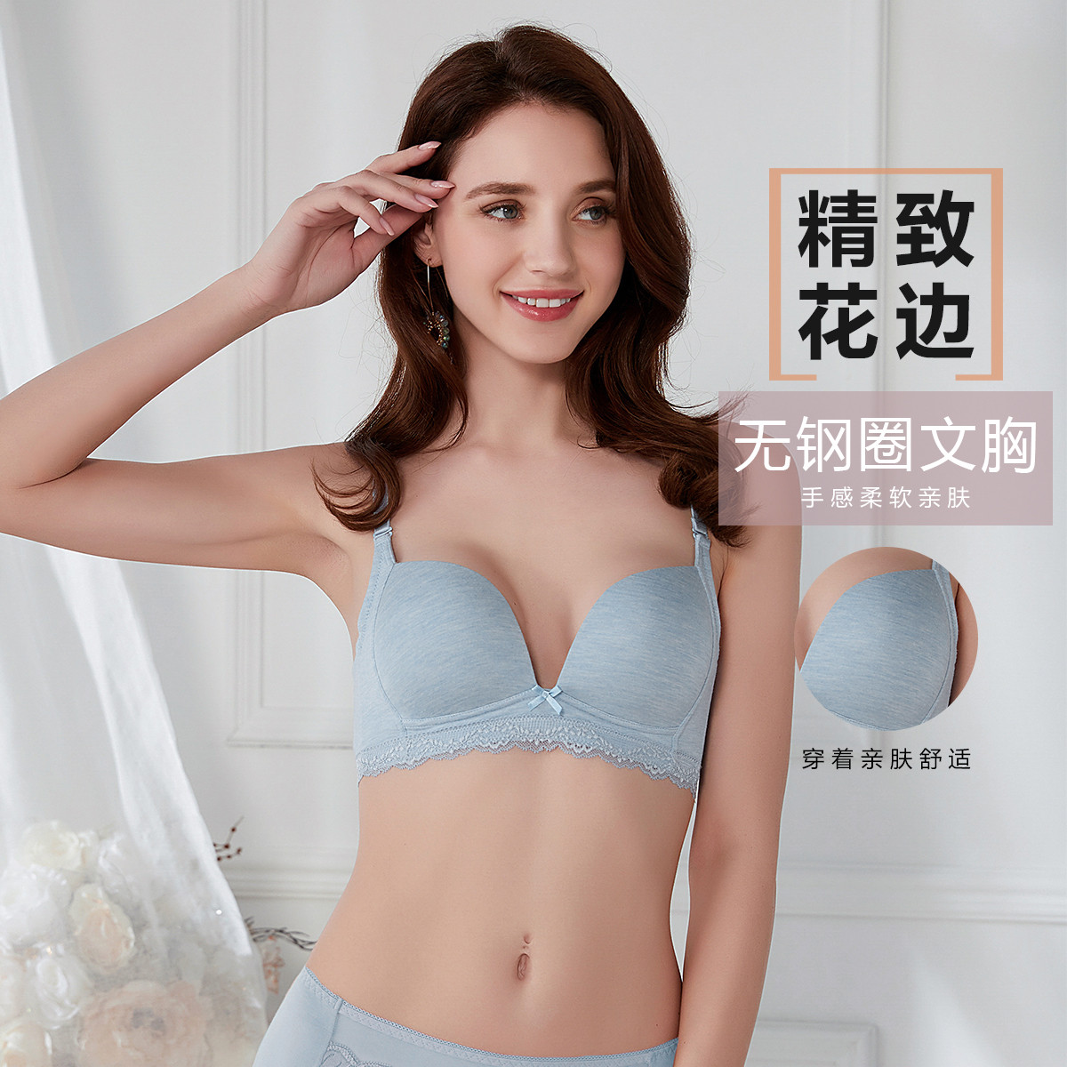 【纯棉透气】内衣文胸小胸聚拢蕾丝花边无钢圈侧收上托文胸罩 792587