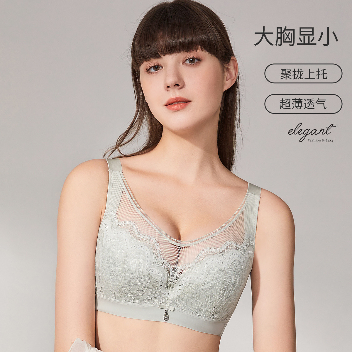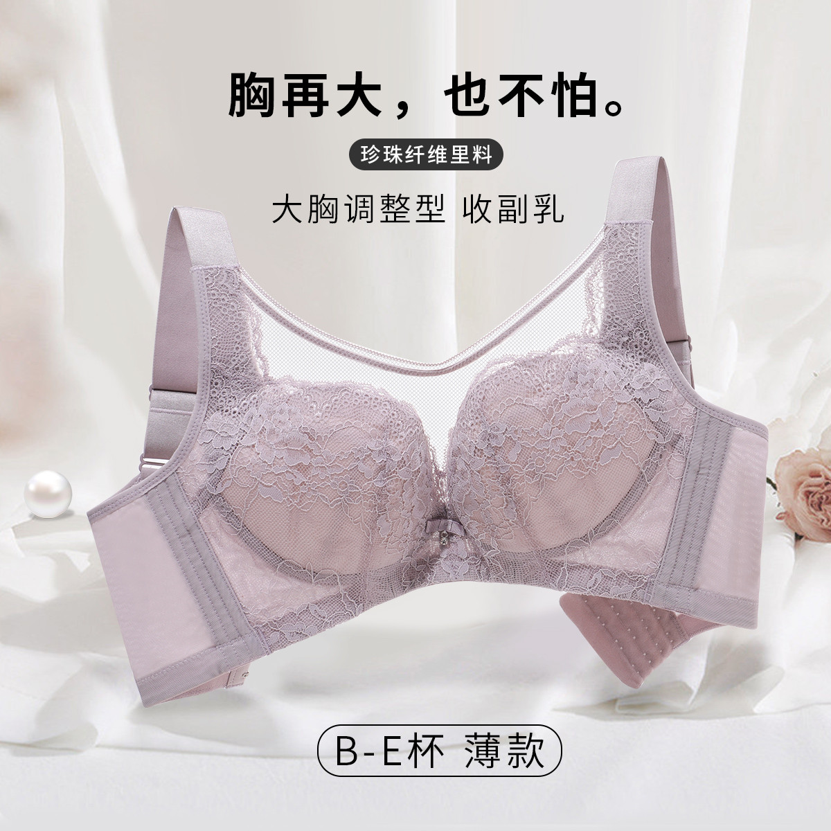 【大胸薄款防走光】大胸显小轻薄透气收副乳防下垂性感蕾丝内衣 620510