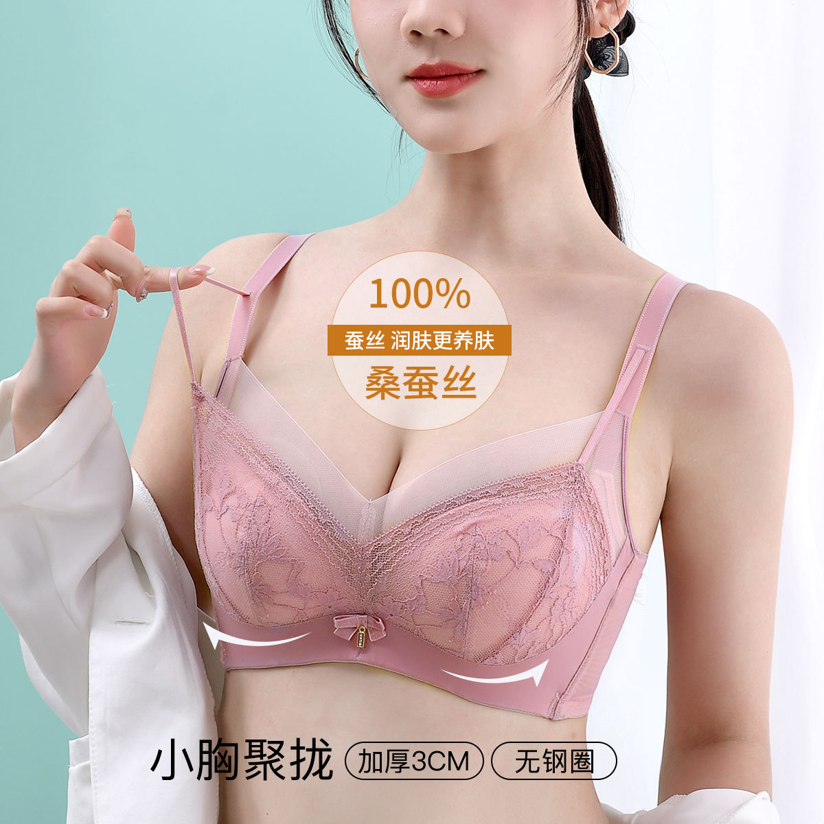 【100%桑蚕丝杯里】舒适无钢圈内衣女士小胸聚拢收副乳文胸罩 457886