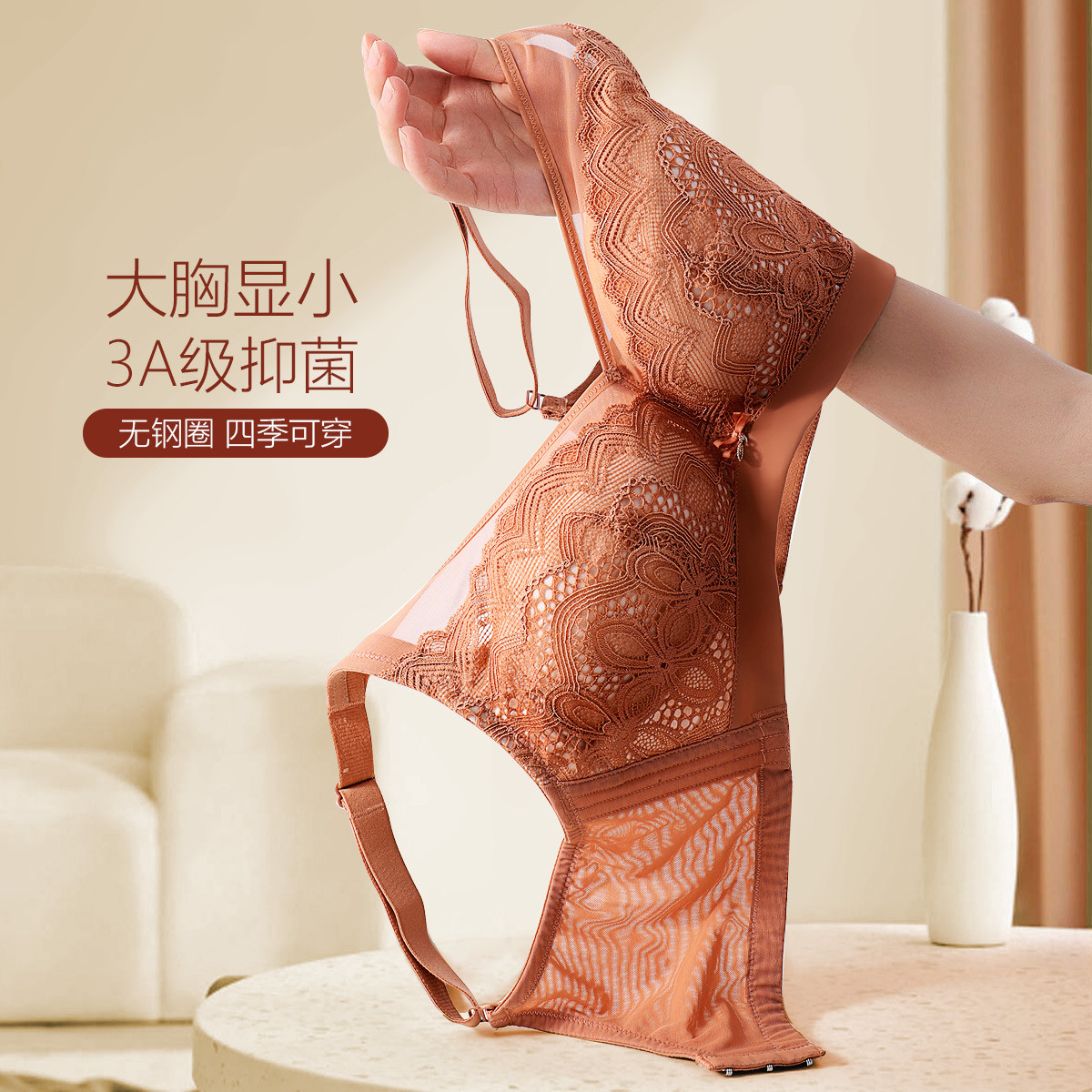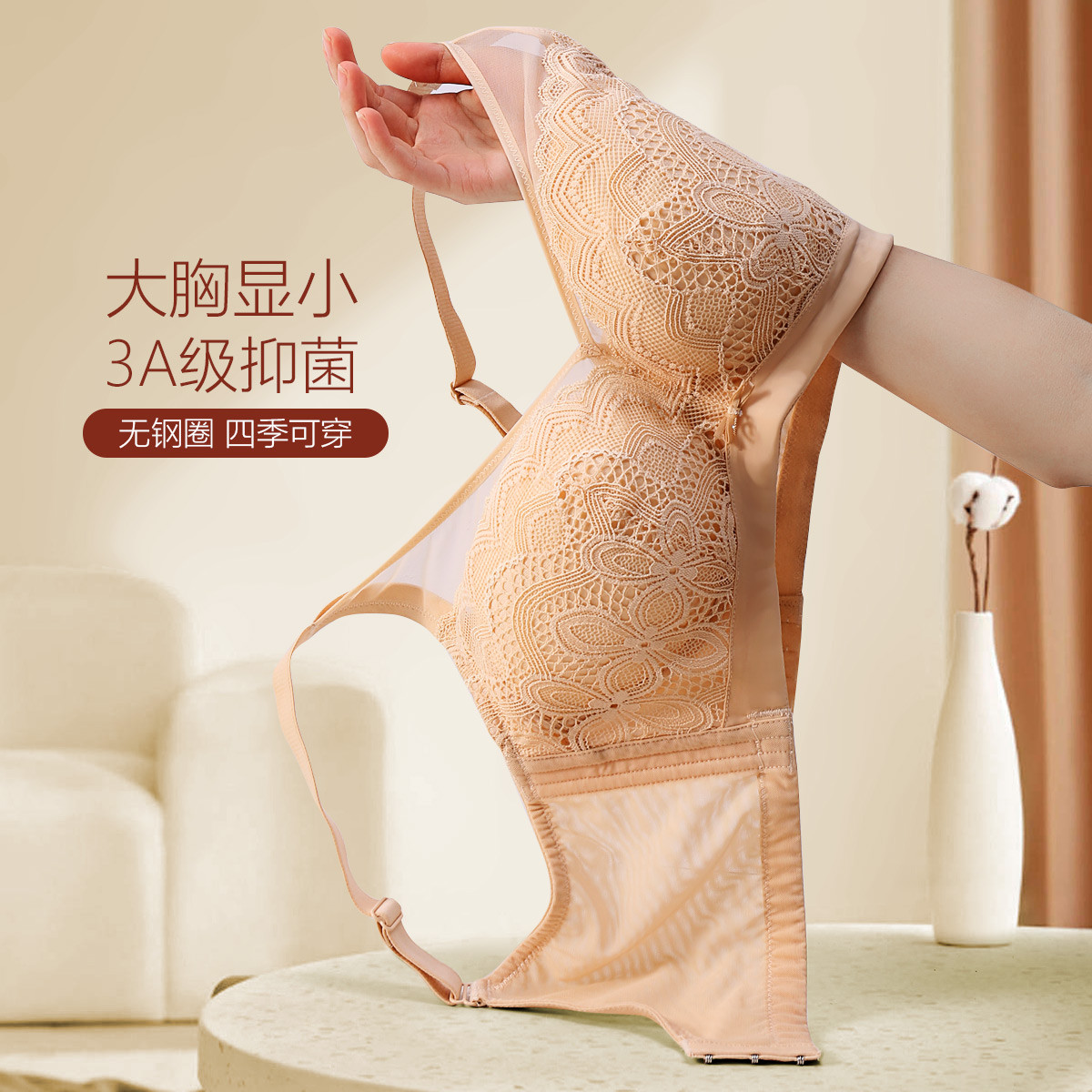 【3A抑菌里料】无钢圈舒适薄款聚拢上托调整型女士内衣女文胸罩 038750
