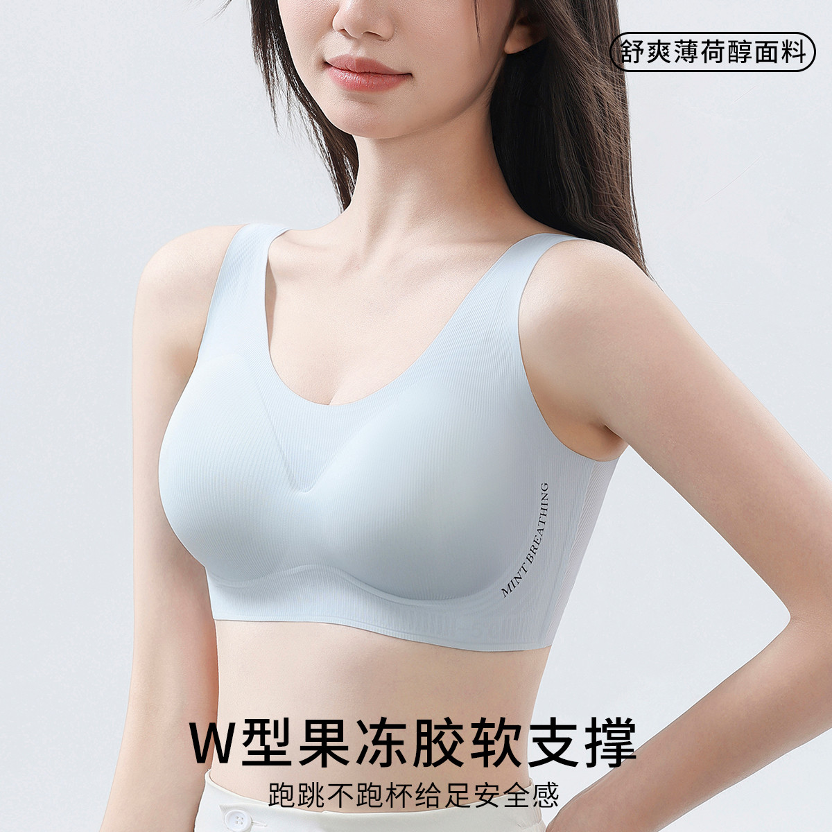 【虞书欣同款】无尺码薄荷V领浪花文胸背心背勾无钢圈内衣女 582080
