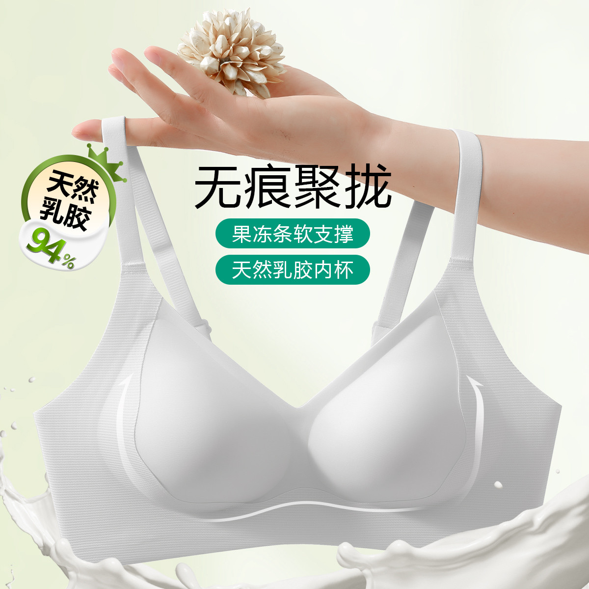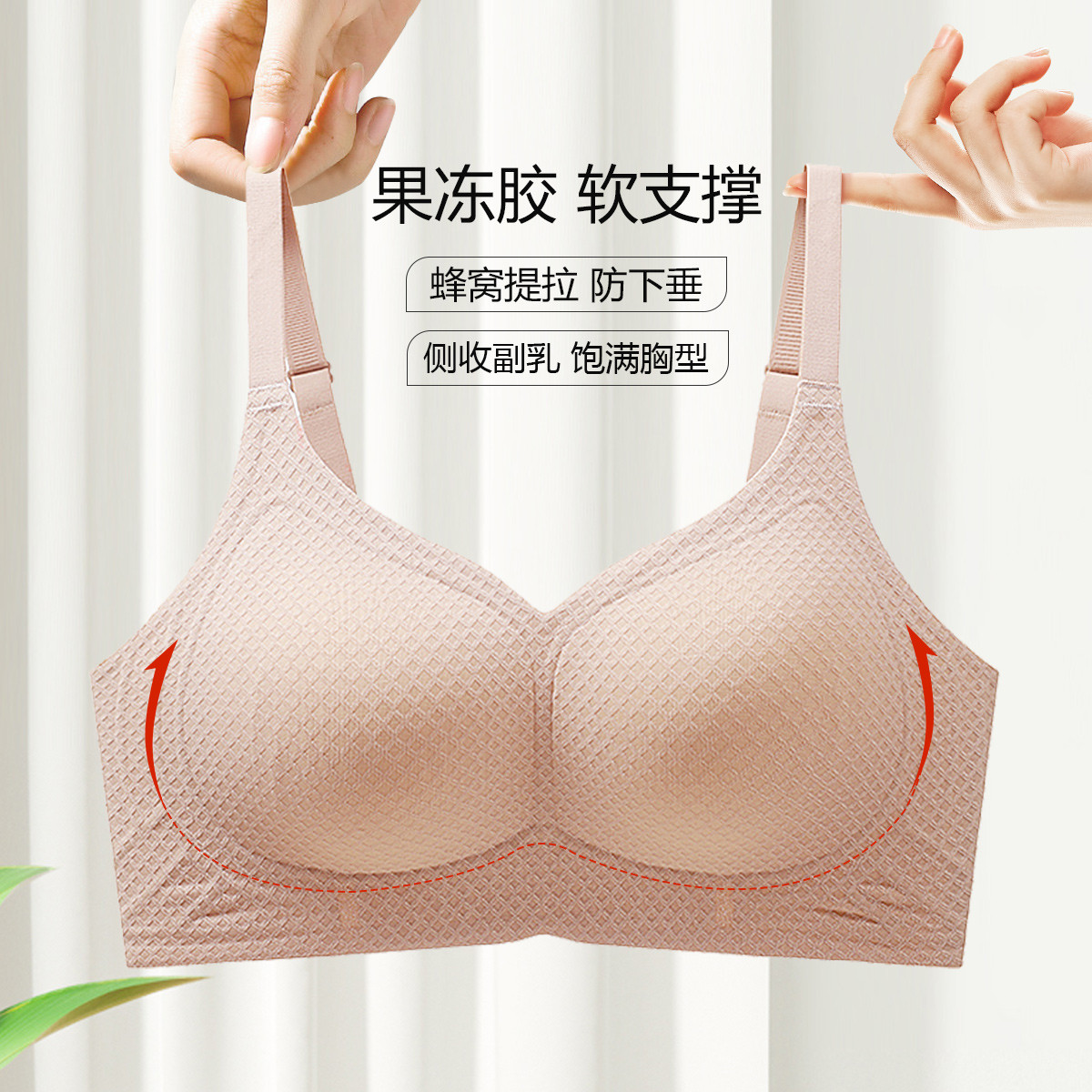 【含乳胶胸垫】侧收提拉聚拢无痕果冻条软支撑女士内衣文胸罩 614366