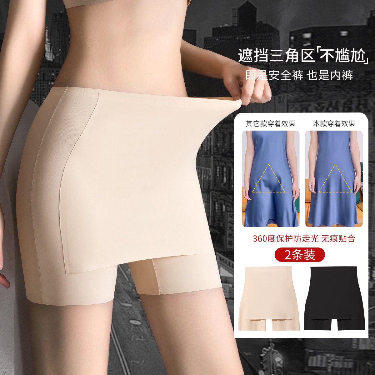 【加大遮挡 防尴尬】2条装收腹提臀安全裤亲肤柔软舒适弹力不勒 907550