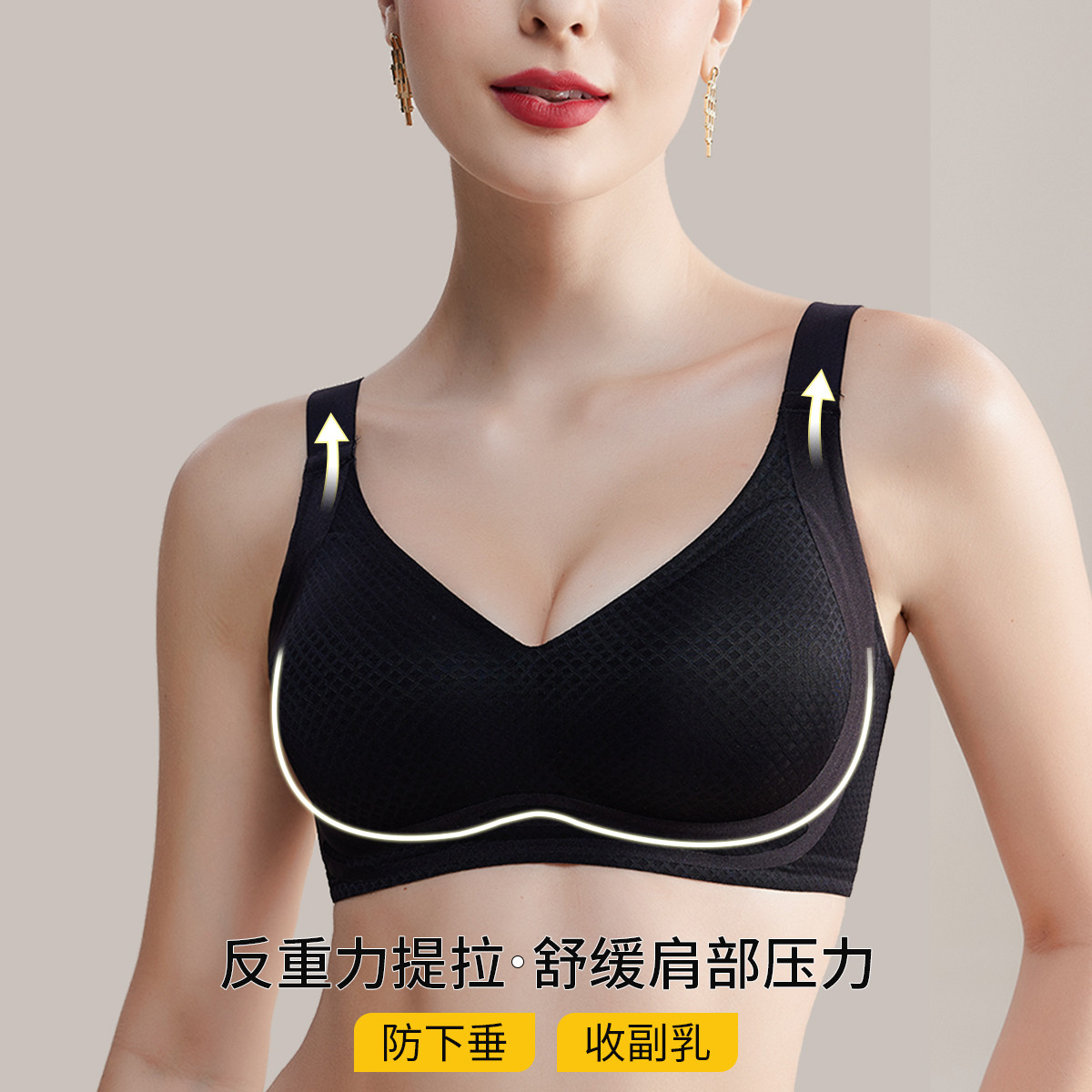 【加倍提拉宽肩带】舒适无钢圈聚拢防下垂不空杯无痕内衣文胸罩 459166