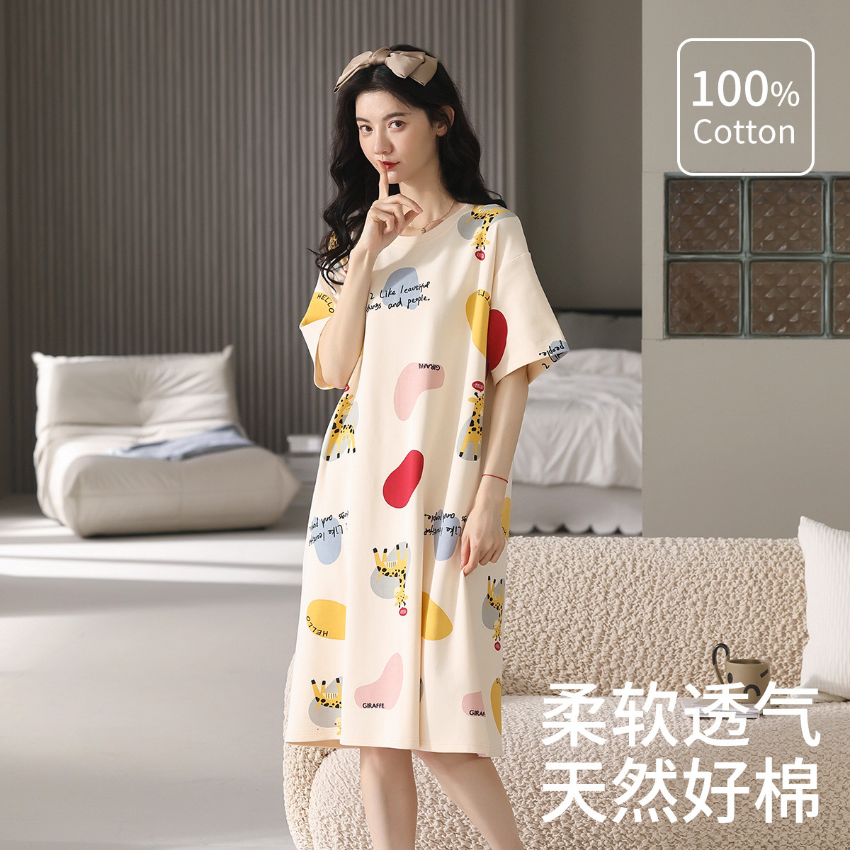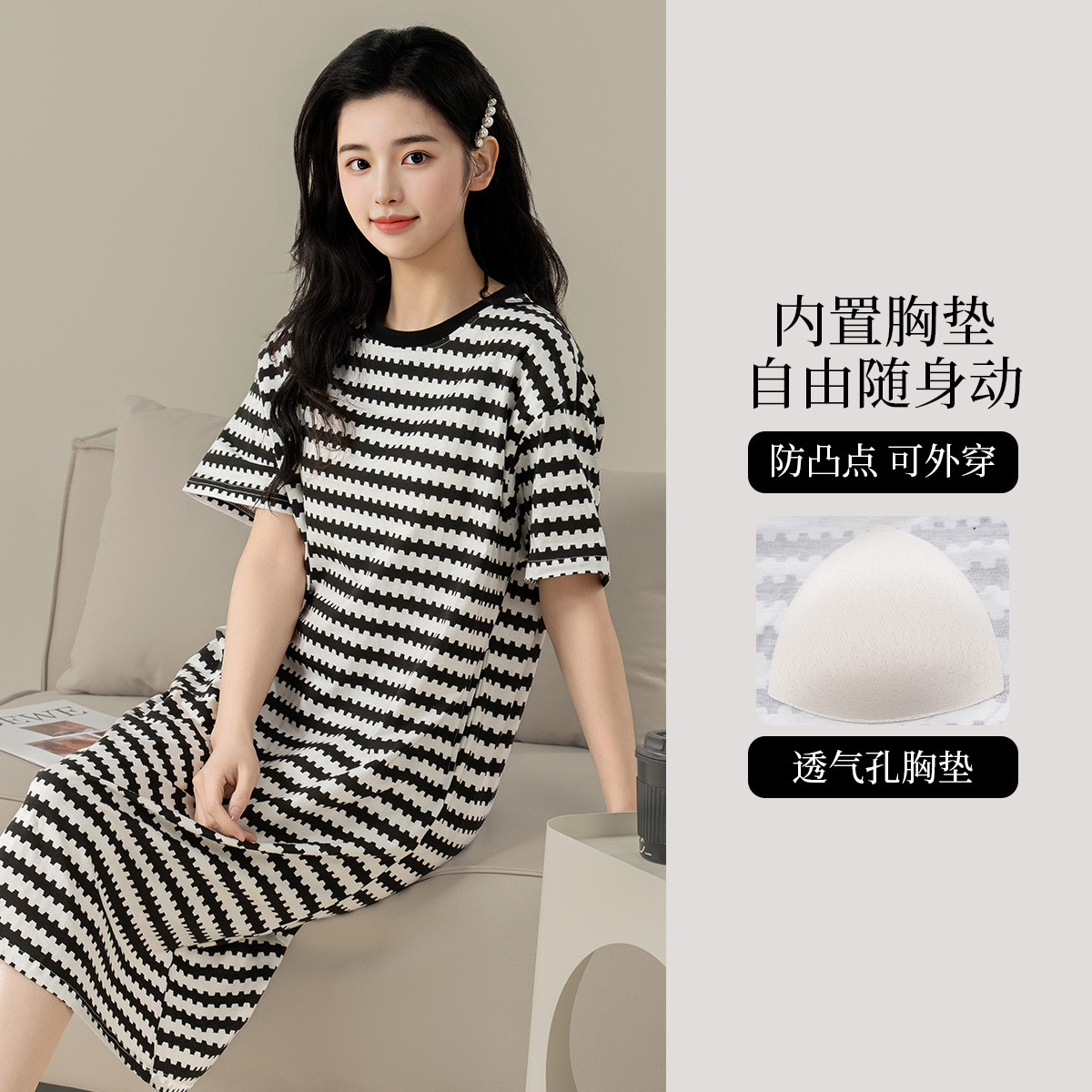 【带胸垫可外穿】宽松慵懒短袖睡裙女士春夏款舒适纯棉家居服睡衣 998411