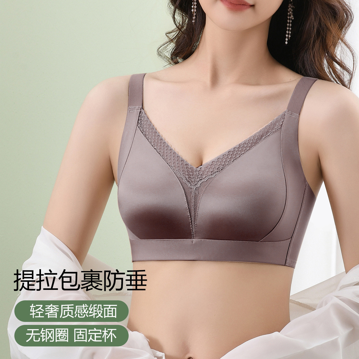 【轻奢缎面 蕾丝性感】无钢圈调整型提拉防下垂内衣女士文胸罩 475358
