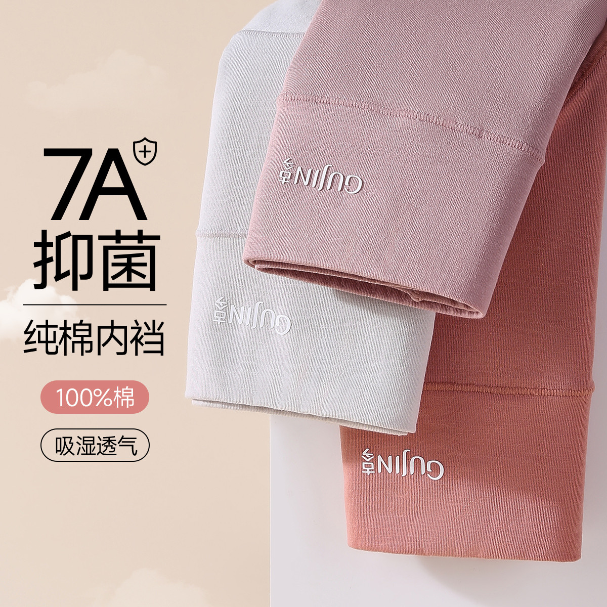 【100纯棉抑菌裆】3条装中高腰收腹柔软透气女士内裤女短裤衩 111947