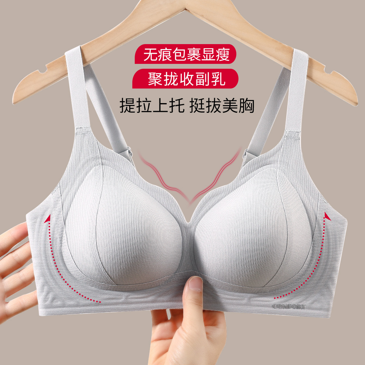 新款【高弹竖条纹】提拉聚拢上托无钢圈收副乳无痕女士内衣文胸罩 583134