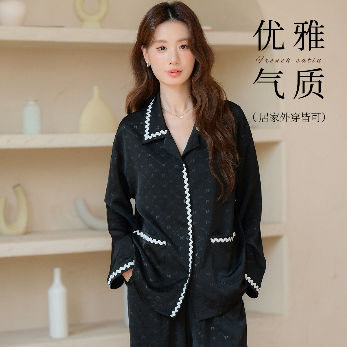 【法式优雅】高级感丝滑缎面女士冰丝睡衣春夏款可外穿家居服套装 304267