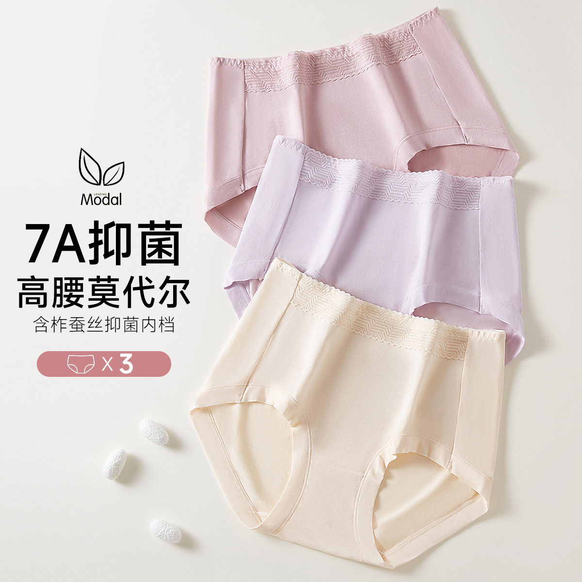 【轻奢莫代尔 7A抗菌】含柞蚕丝裆无痕女士内裤女高级内衣女 485515