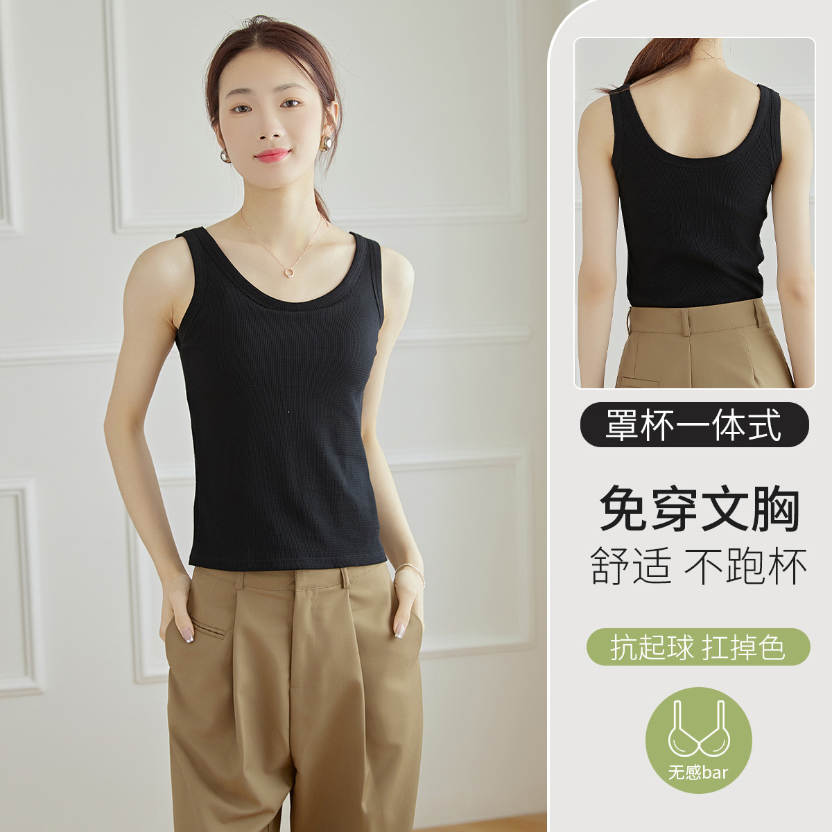 【免穿文胸】固定罩杯背心女亲肤棉质无袖西装内搭打底上衣可外穿 484043