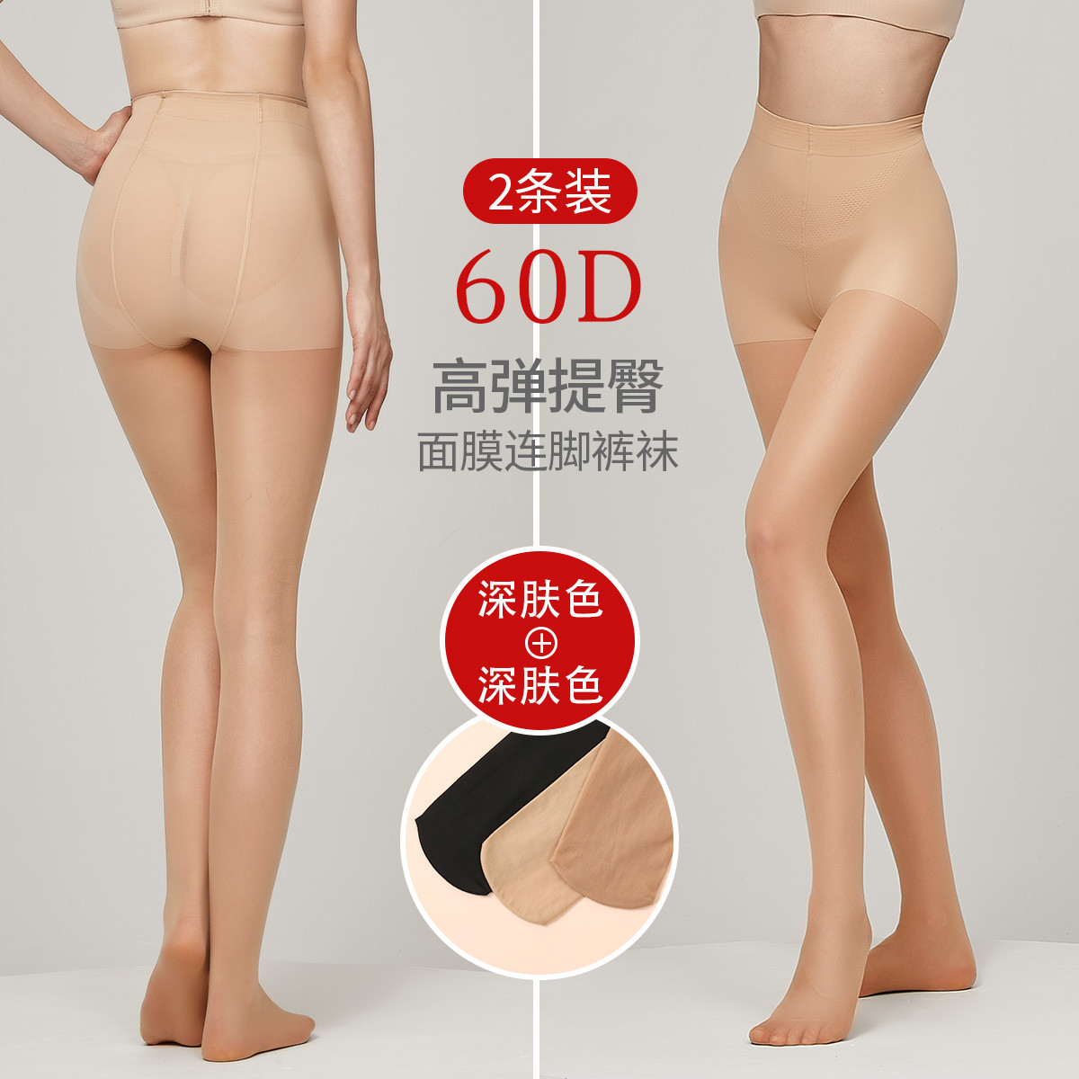 【2条装】面膜丝滑肤感60D高弹收腹提臀显瘦打底连脚裤袜女 789150