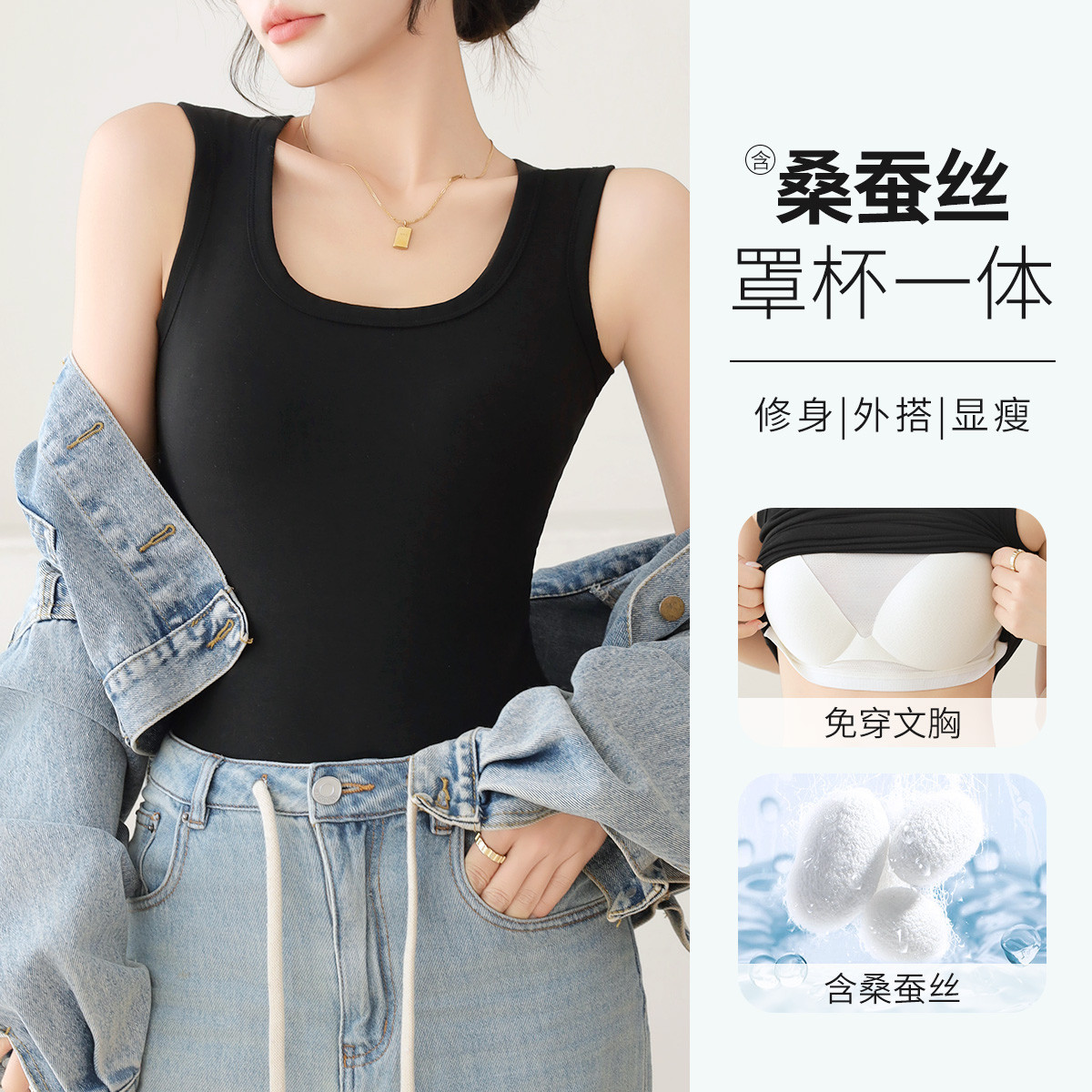 【含桑蚕丝】春夏款免穿文胸内衣可外穿内搭美背吊带背心女内衣女 479947
