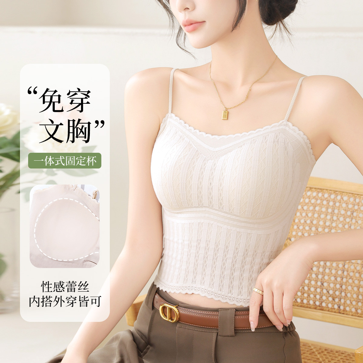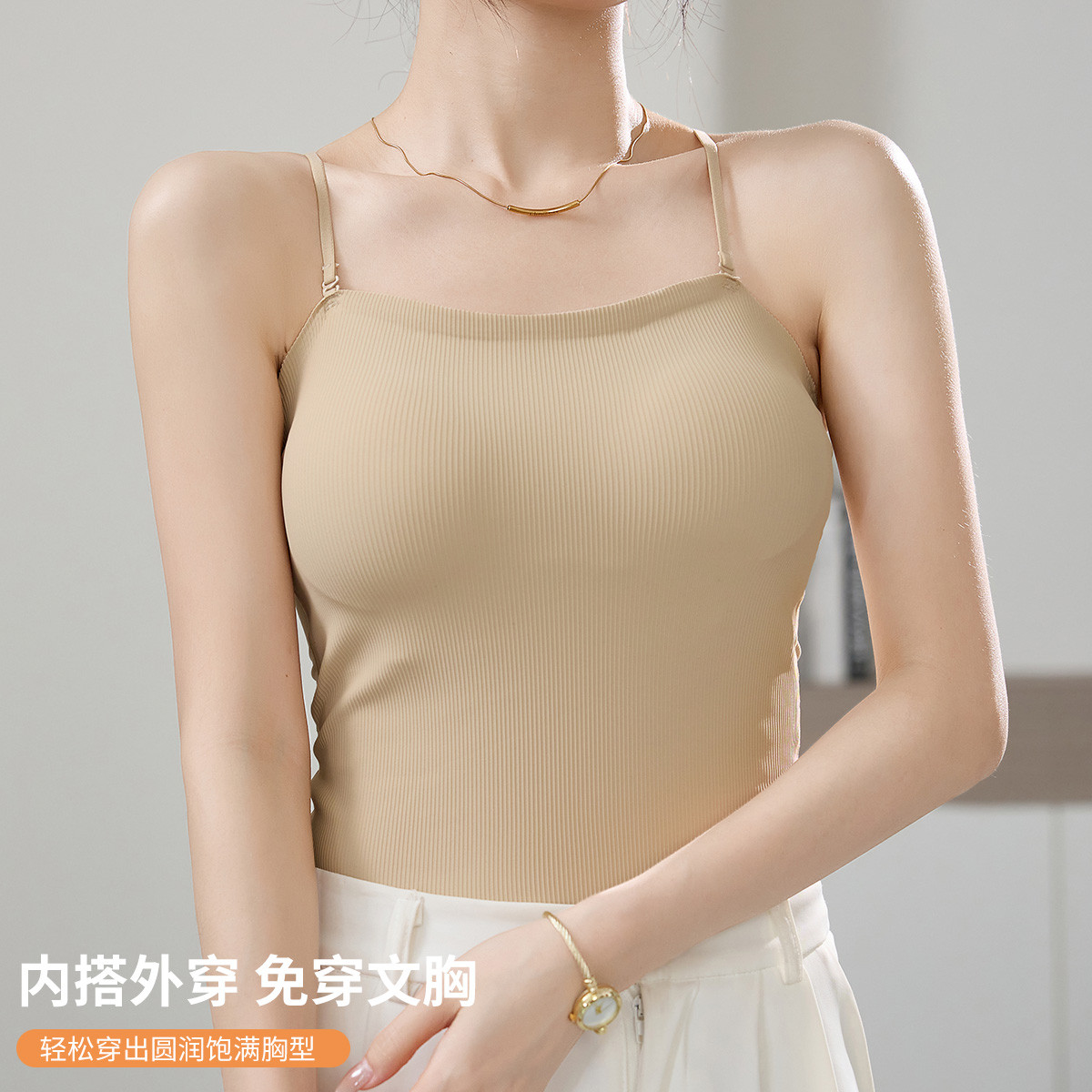 【带胸垫不跑杯】内衣女夏季薄款舒适无痕打底吊带背心女内搭美背 737099