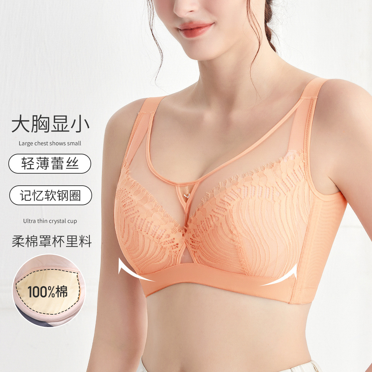 【100%纯棉杯内里】蕾丝性感调整型大胸显小防下垂聚拢文胸罩 560350