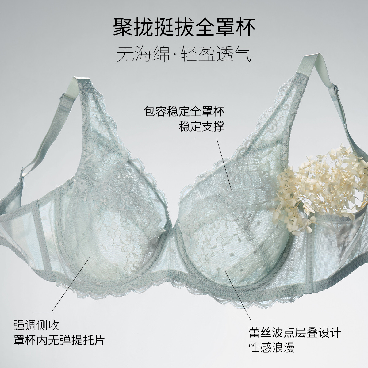 【精致透气 花瓣杯】清爽性感花卉蕾丝舒适承托薄杯内衣文胸女士 576715