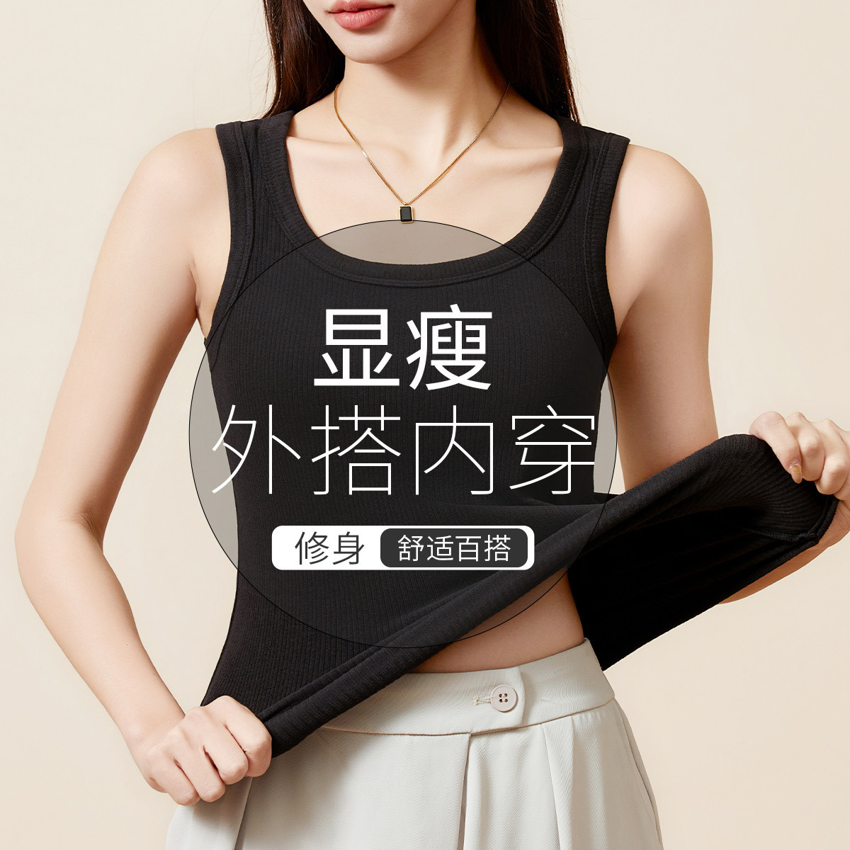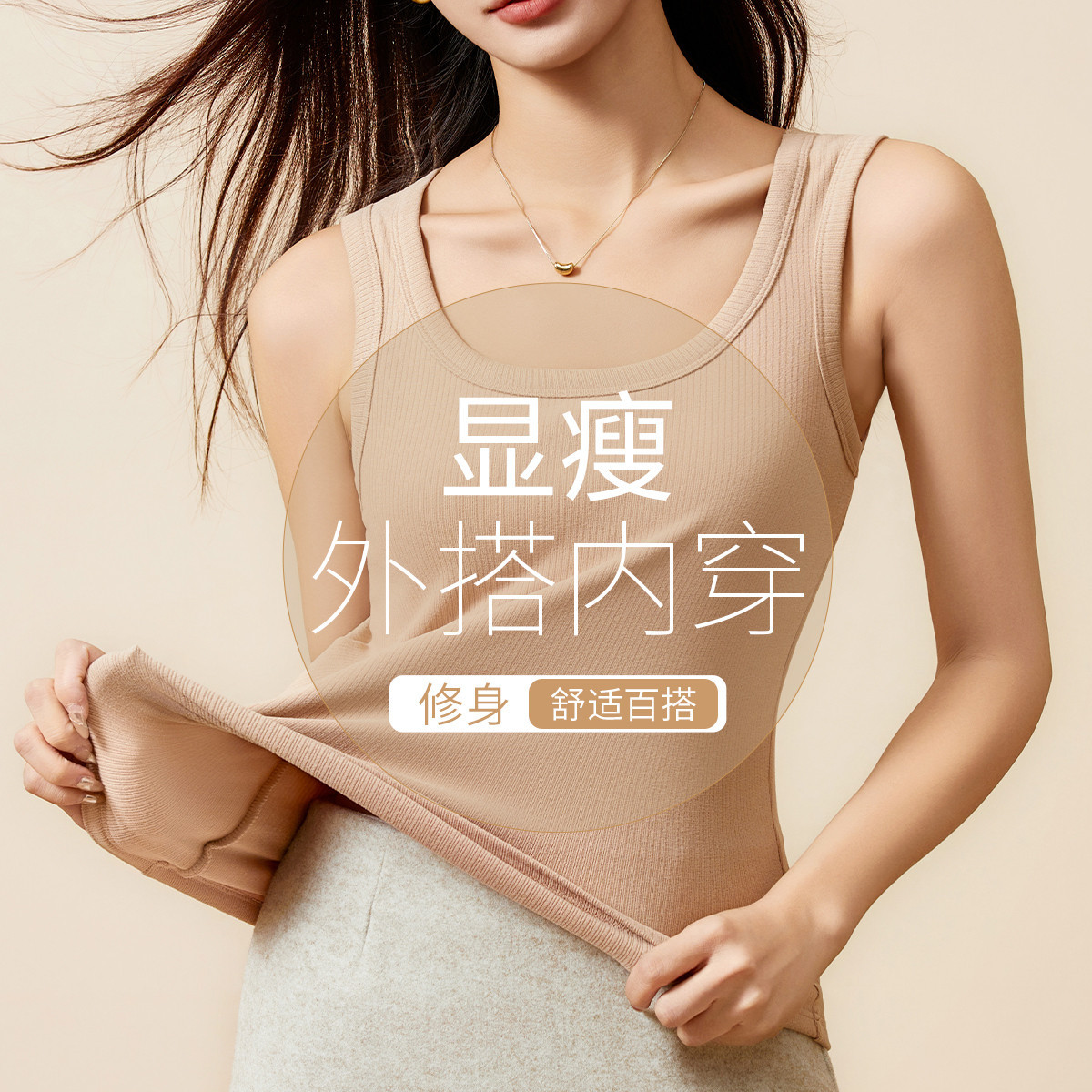 舒适柔软保暖背心女士内衣秋衣女无痕无袖螺纹圆领保暖上衣打底女 275659
