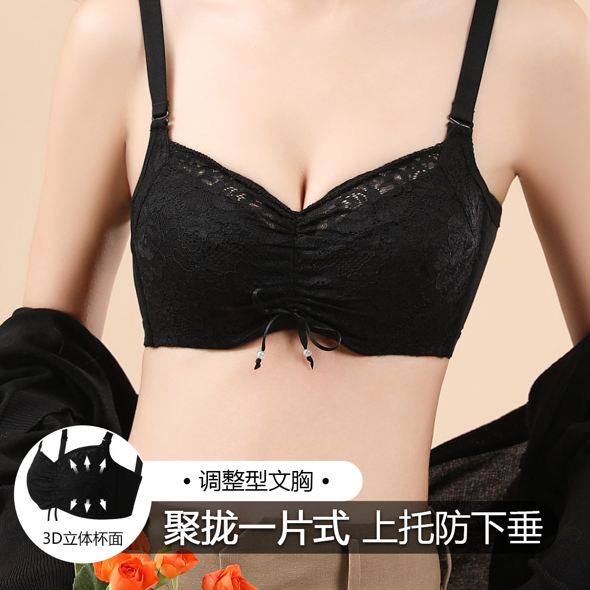 【小胸专用】蕾丝性感小胸聚拢调整型收副乳内衣女无钢圈文胸罩 862622