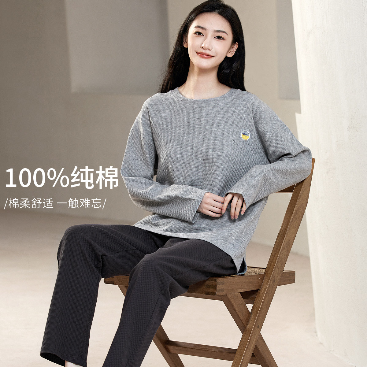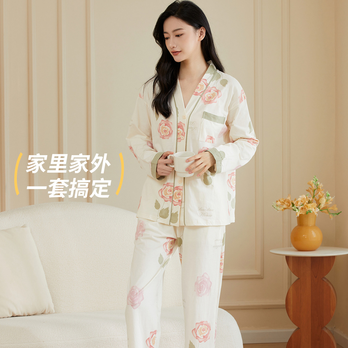 【100%棉】可外穿家居服套装女士春秋款高级感长袖长裤睡衣 607883