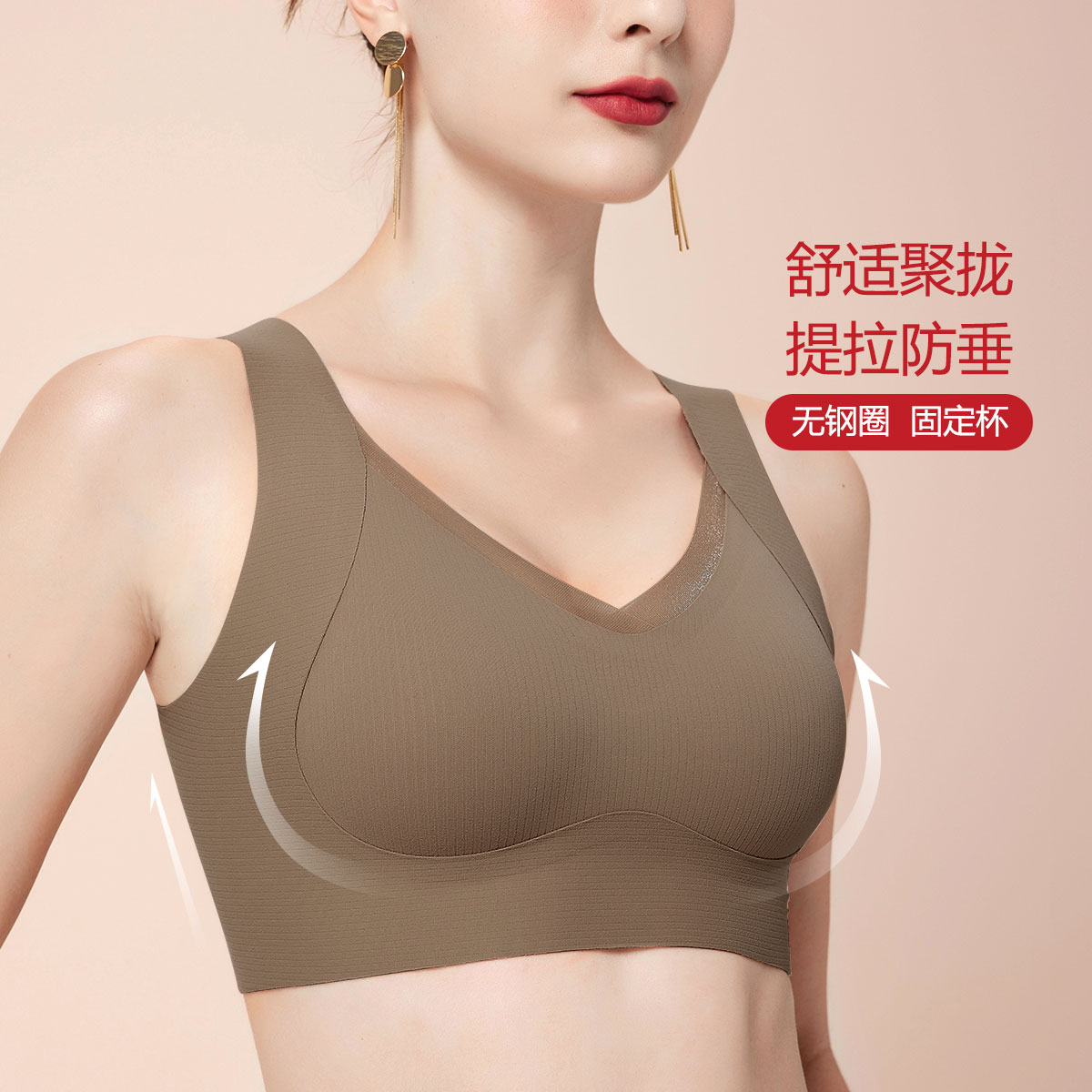 透气无痕内衣女夏季薄款聚拢无钢圈软支撑半固定杯美背文胸罩新 822494