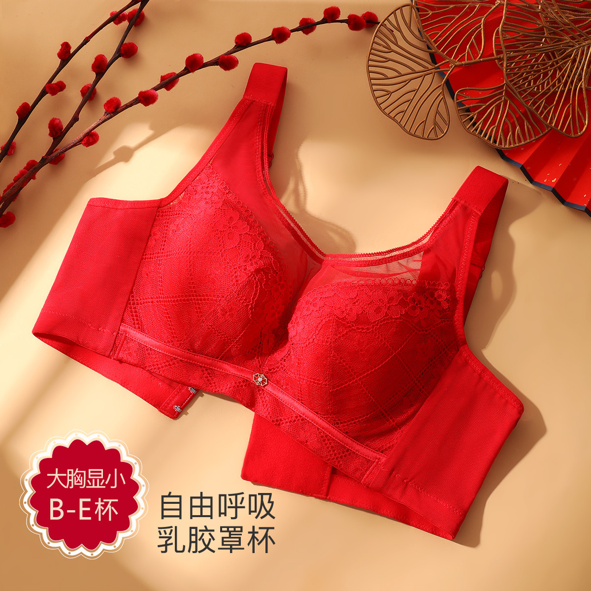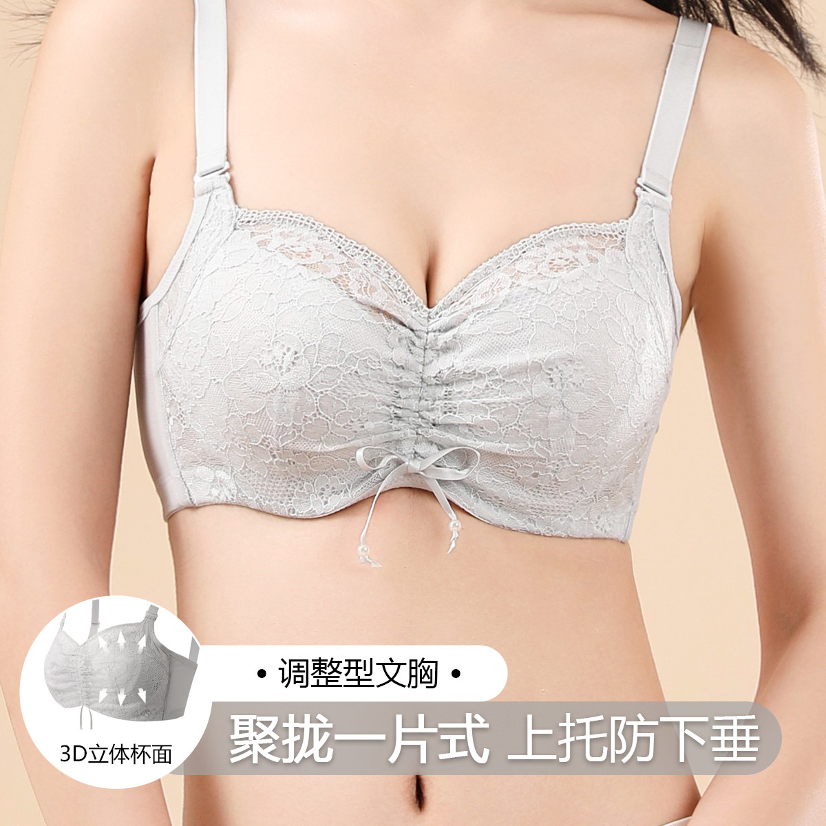 【大胸显小收副乳】乳胶薄款聚拢上托侧收调整型女士内衣文胸罩 034142