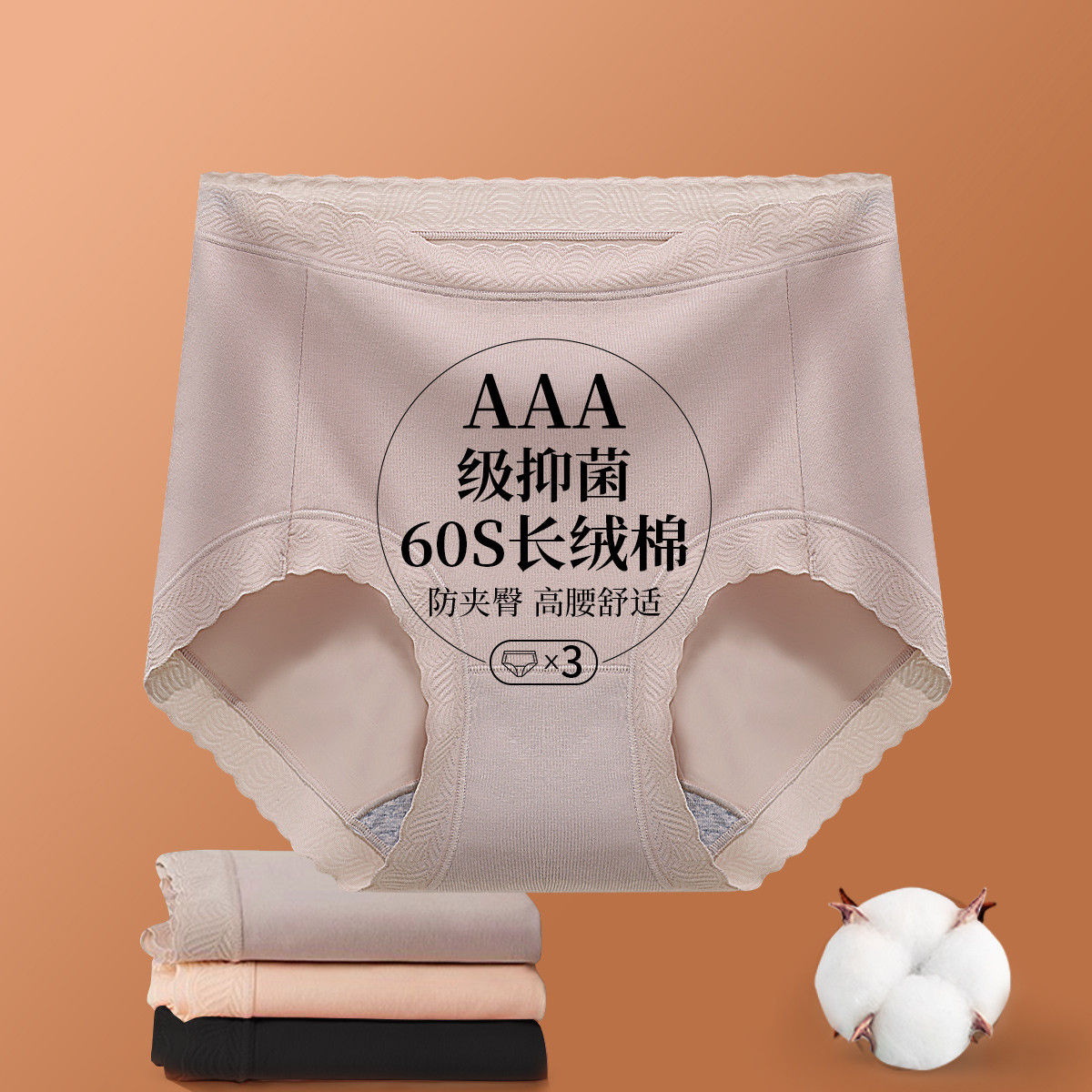 【捡漏出清3A抑菌长绒棉裆】3条装高腰收腹内裤棉质透气内裤女 735646