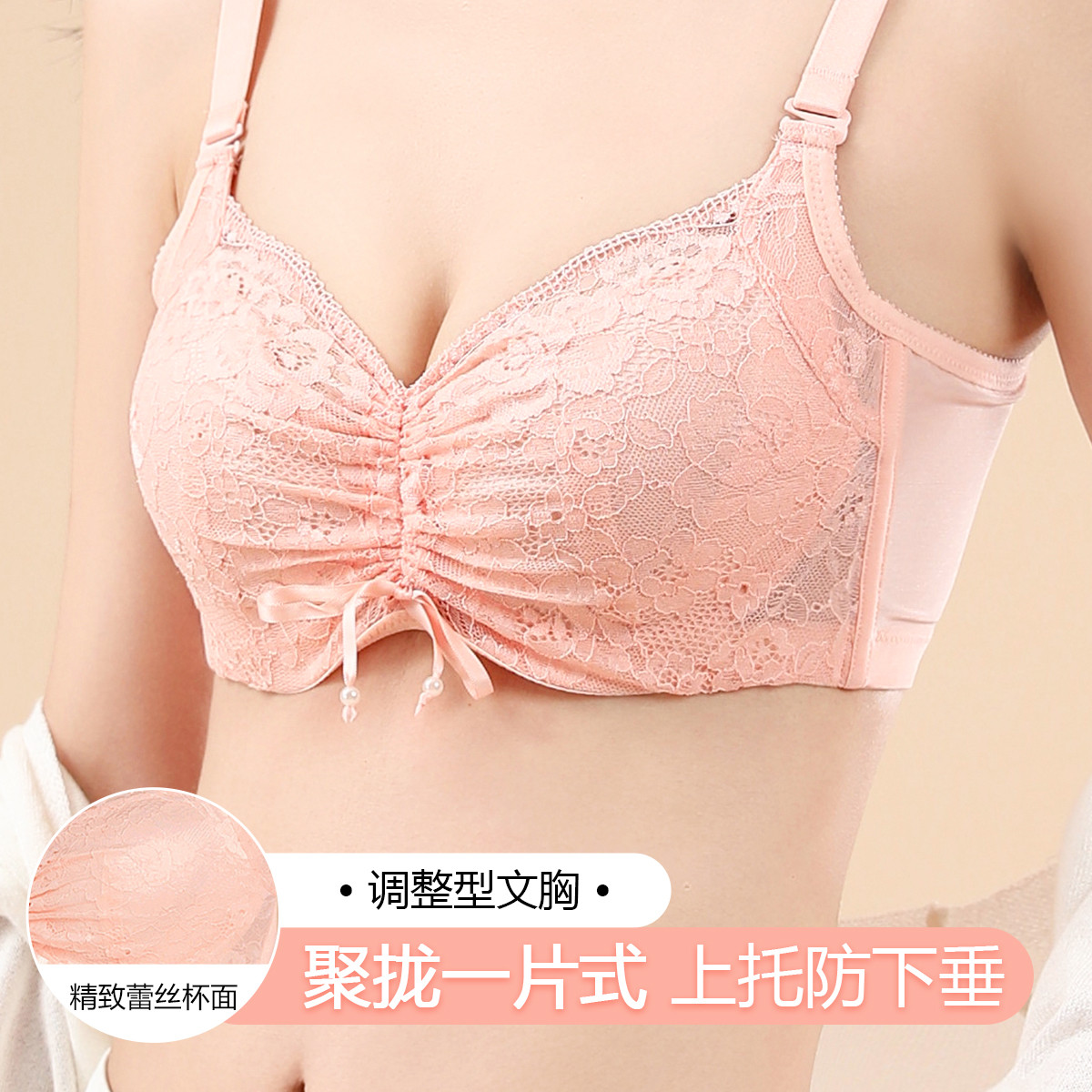 【小胸专用】蕾丝性感小胸聚拢调整型收副乳内衣女无钢圈文胸罩 866718