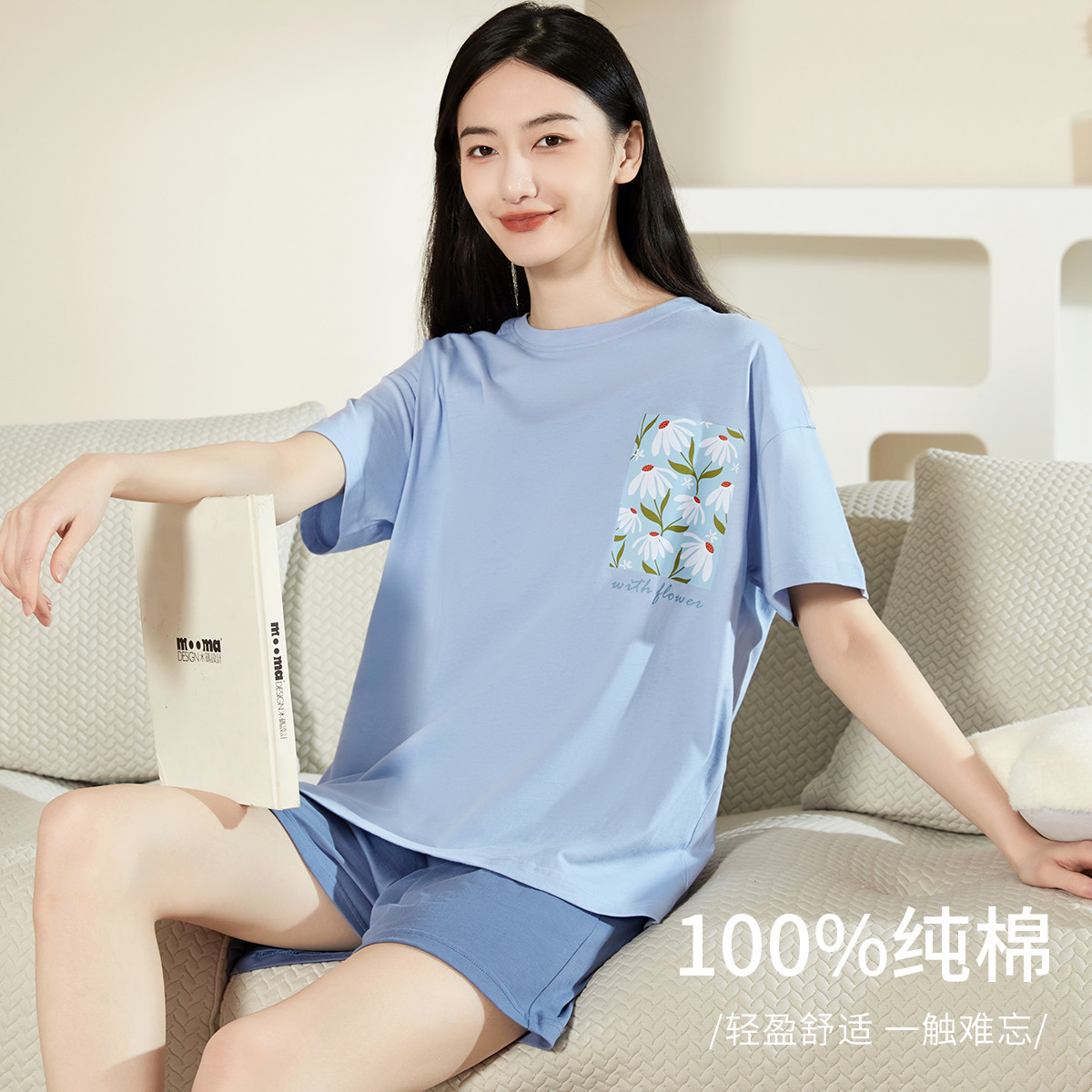 【蓝莓冰沙100%棉】舒适柔软套装纯棉睡衣女士家居服可外穿 894859