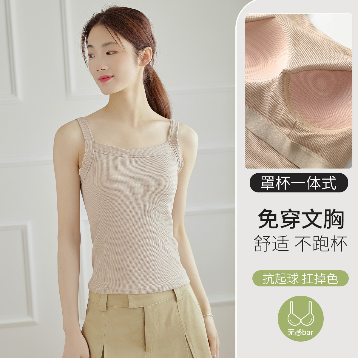 【带胸垫不跑杯】背心一体式夏天吊带夏季薄款女性感一字领可外穿 340043