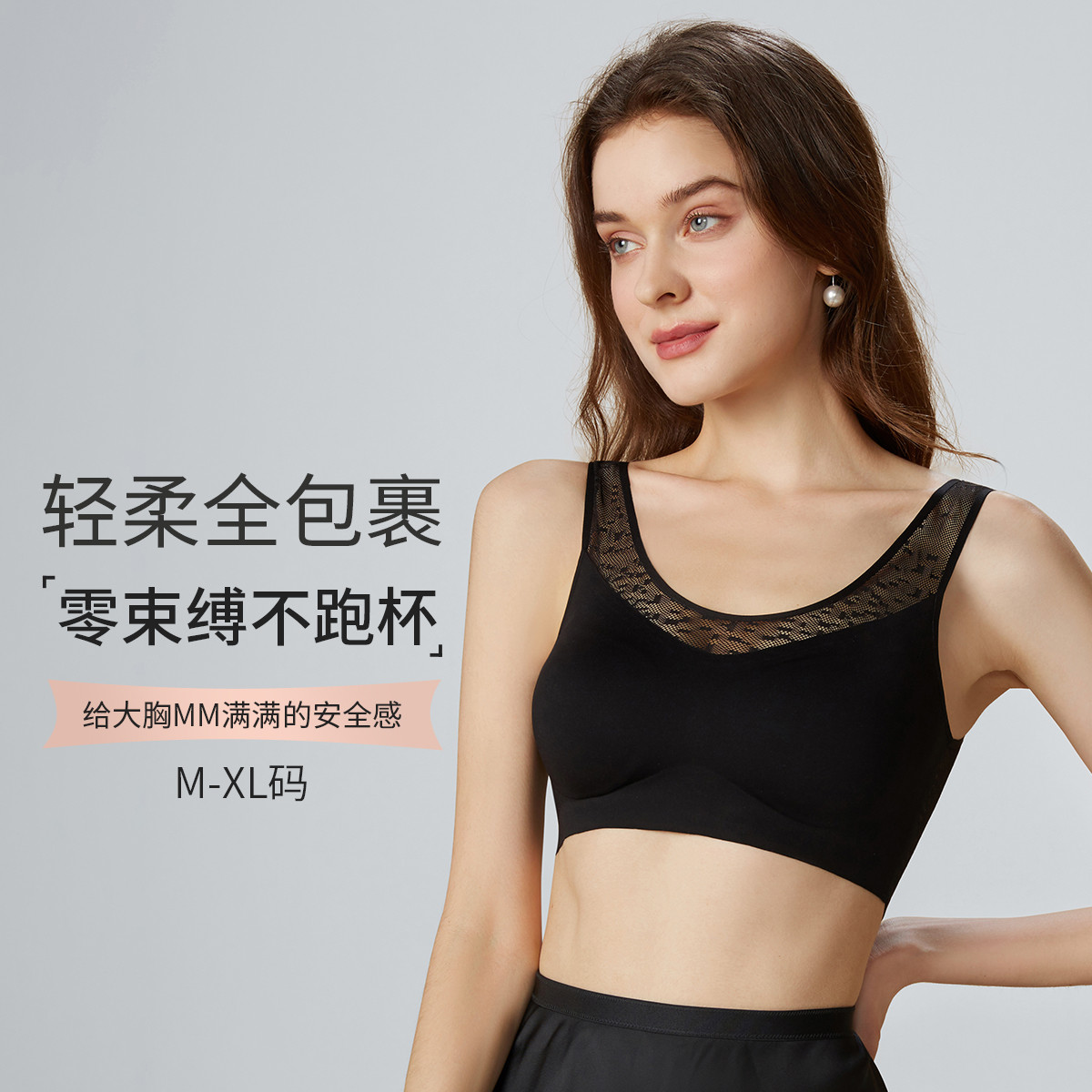 【性感网纱聚拢侧收】无钢圈薄杯抹胸美背内衣收副乳防下垂文胸女 295371