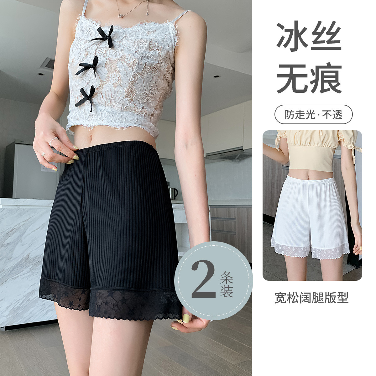 【2件装】星星花边安全裤打底裤防走光夏季薄款无痕宽松不卷边 812107